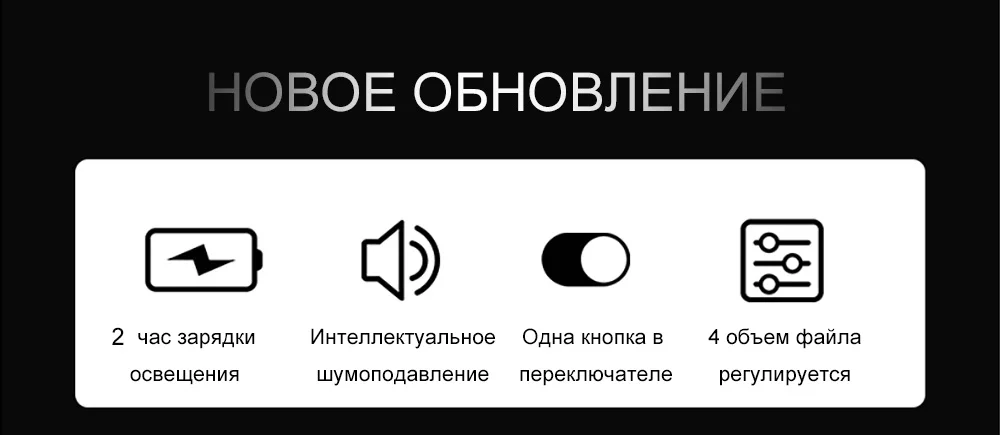 ① 2 часа зарядки освещения ② Интеллектуальное шумоподавление ③ Одна кнопка для переключения ④ Регулировка громкости 4 файлов