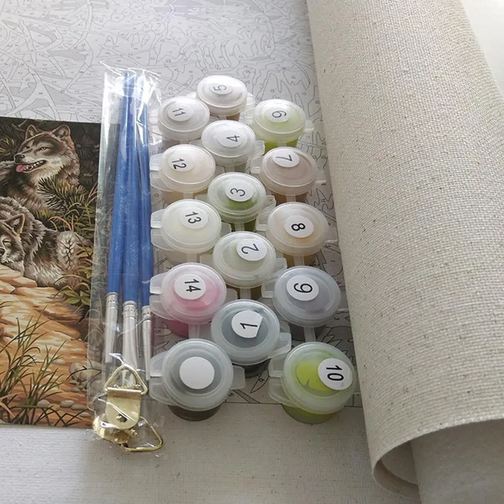 1 * DIY краски ing холст + 3 * кисти + краска (без рамки)