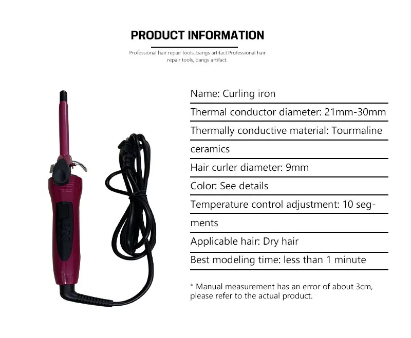 Men'S Children's 9 мм штанга для завивки цифровой дисплей ультратонкая Электрическая роликовая мини маленькая Пермь электрическая керамическая парикмахерская