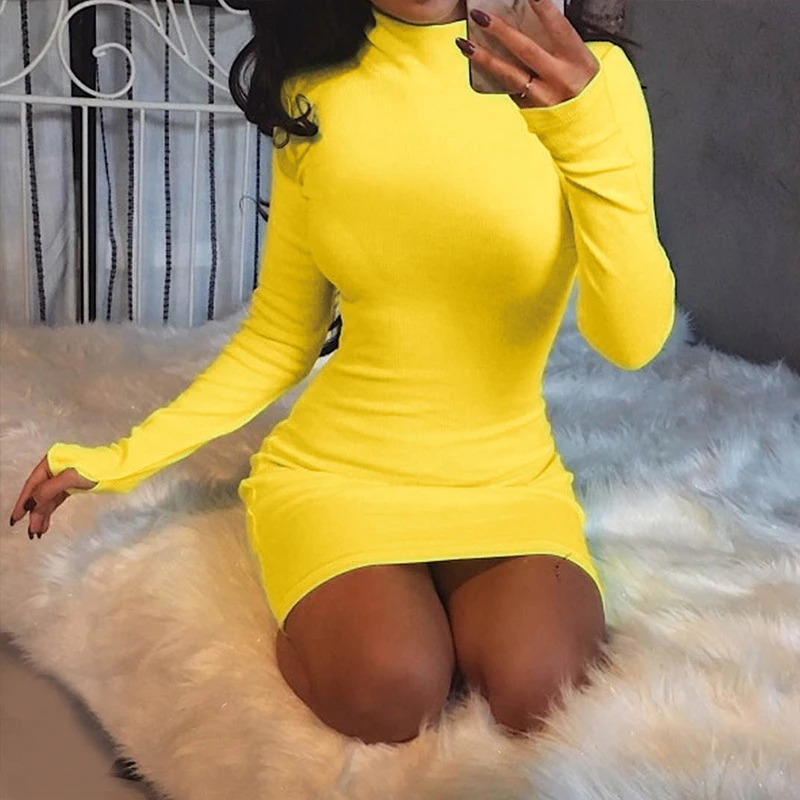 Женское облегающее платье Adogirl, однотонное облегающее платье с высоким воротником и длинным рукавом, облегающее мини-платье на осень и зиму, 2019