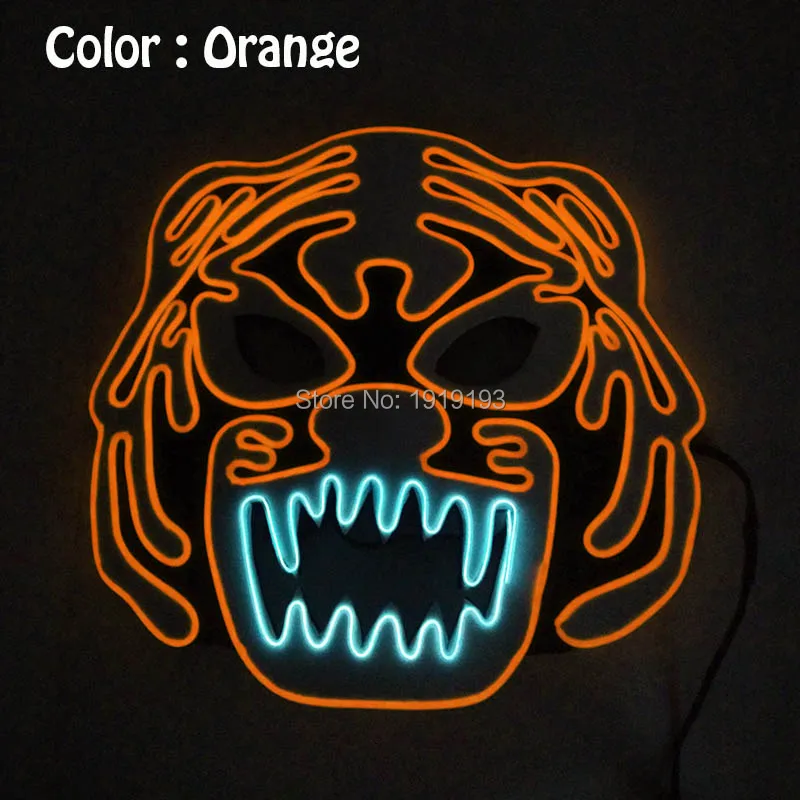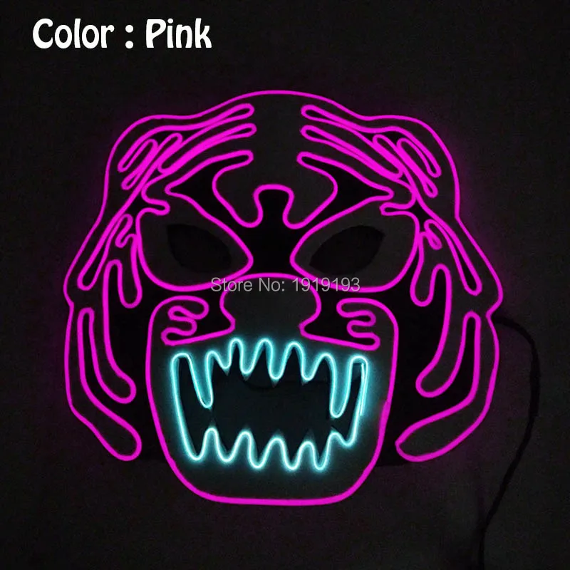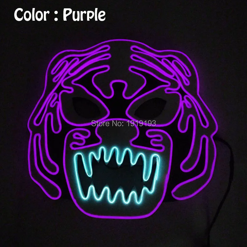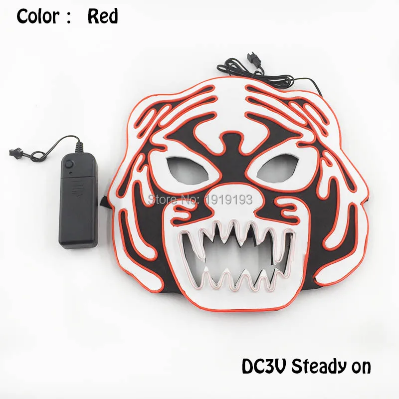 - Name: EVA Mask- Type: DC3V-Steady on- Color: 10 Colors Available(Transparent Blue, Blue, Green, Lime Green, Pink, Red, Orange, Yellow, Purple)- Powered By: DC3V-Steady on (2 x AA Batteries)- The EL Mask Set is not included batteries.- Function: Steady On, Slow Flashing, Fast Flashing, Off- Item Weight: 100g/piece - Application: Party, Rave Parties, Discos, Clubs, Haloween ,Birthdays, Festivals and Event Party SuppliesPackage Including