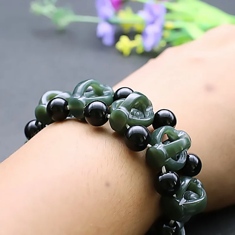 Название:Натуральный Hetian нефрит Qingyu счастливый талисман полый браслет