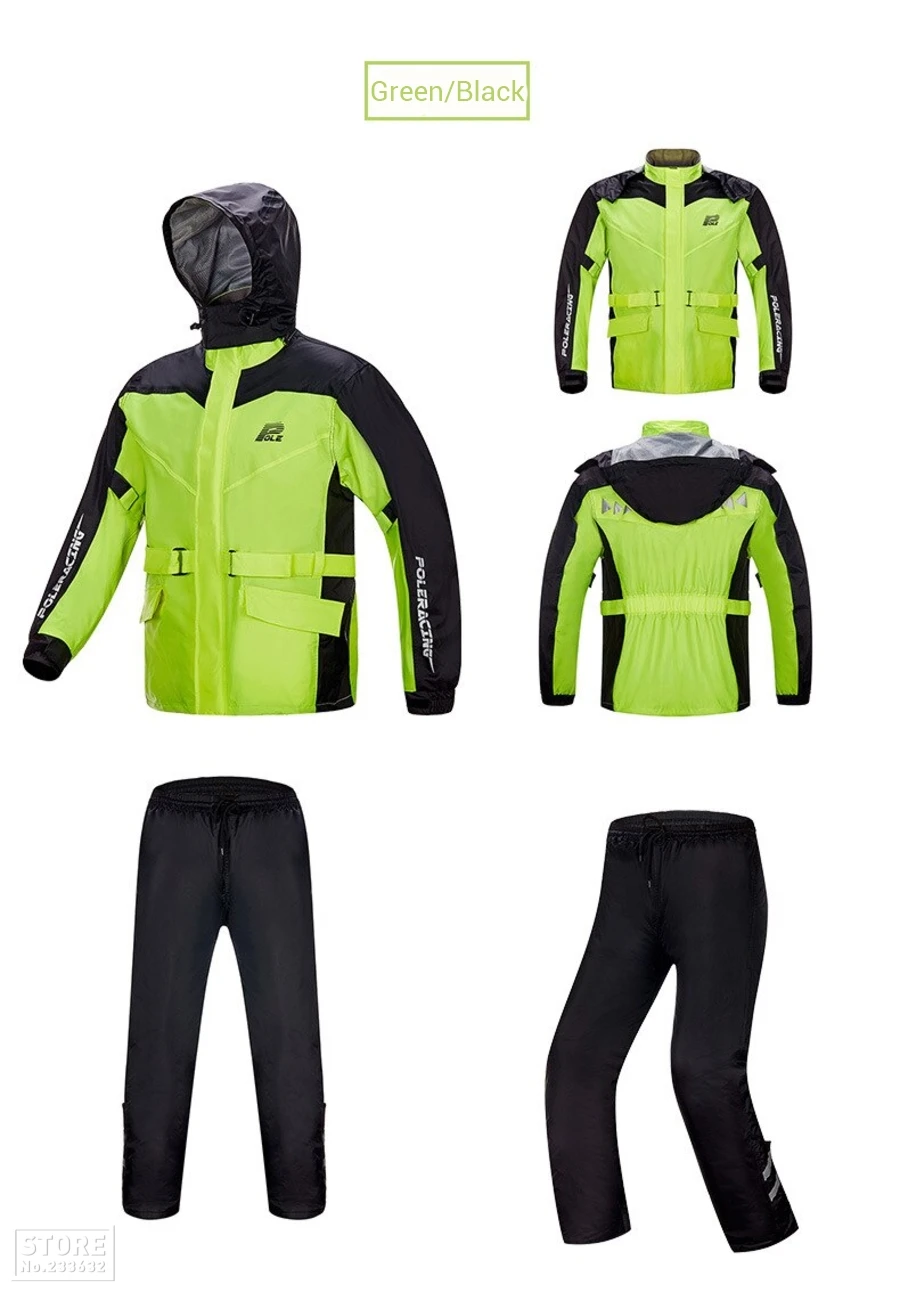 Характеристика: Более удобно ездить на ноге с достаточно гидроизоляцией в условиях сильного дождя Водонепроницаемая Технология анализа, профессиональное водонепроницаемое покрытие (PU): после профессиональной водонепроницаемой обработки покрытия, может эффективно блокировать дождевую воду. Характеристики: Ткань: 210 T + PU + сетка + PU клей Вес: 1,0 кг Легкий и тонкий: легкий, не знойный, без веса, водонепроницаемый Рекомендуемый размер: Упаковка включает: Плащ-1 шт. 1 х дождевые штаны