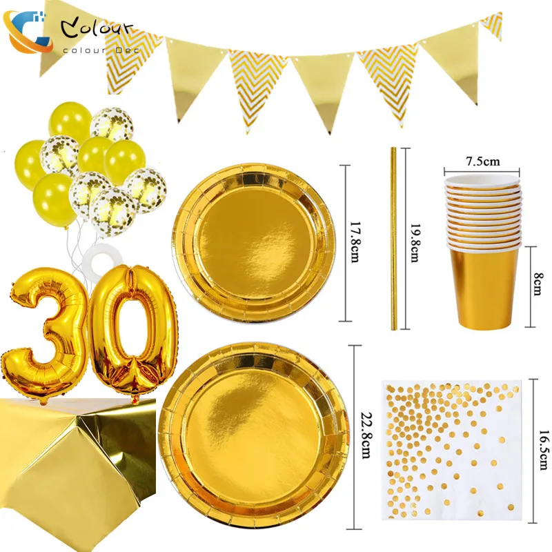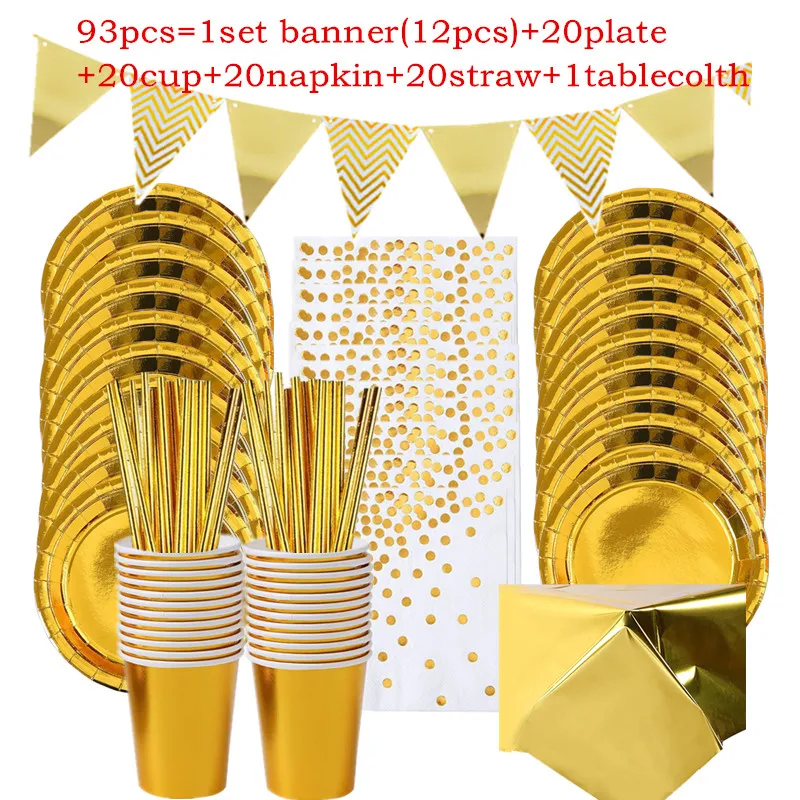 Stamping Plates Disposable Golden Cups Paper Napkins Party Plates Happy Birthday Party Decor Adult Wedding Dishes Tableware