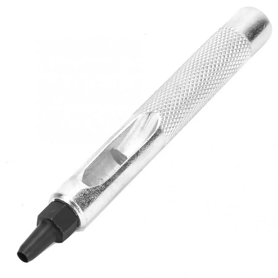 В комплект входят 6 шт. сменных головок, размером 2,0 мм, 2,5 мм, 3,0 мм, 3,5 мм, 4,0 ММ, 4,5 мм для легкого пробивания различных спецификаций круглых отверстий. Нескользящая рифленая конструкция позволяет стабильно захватывать перфоратор, так что вы можете ударить отверстие более точно. Аккуратно протрите круг ударом, чтобы убедиться, что это отверстие, которое вы хотите. Ударьте по стыку отверстия с помощью стандартного молотка. Лучше всего использовать древесину средней плотности или пластик в качестве подложки.