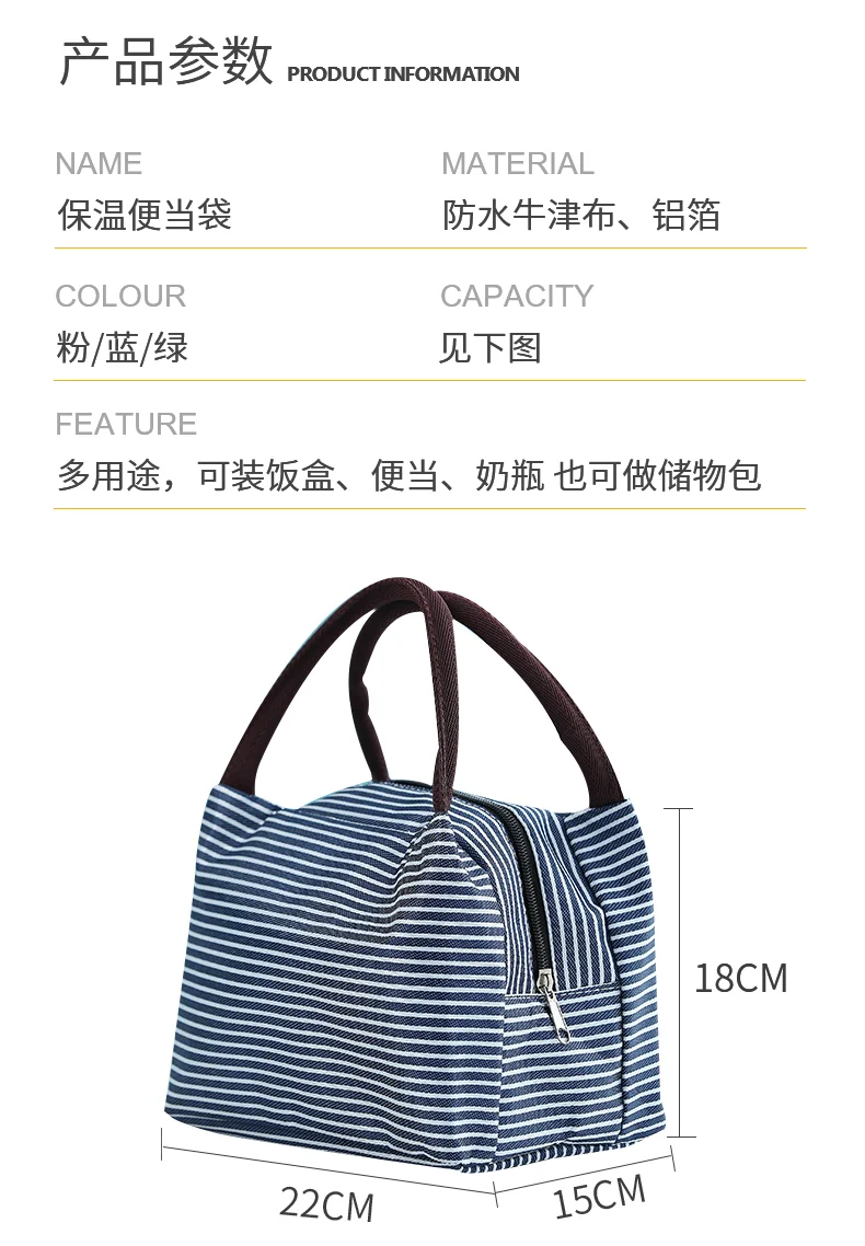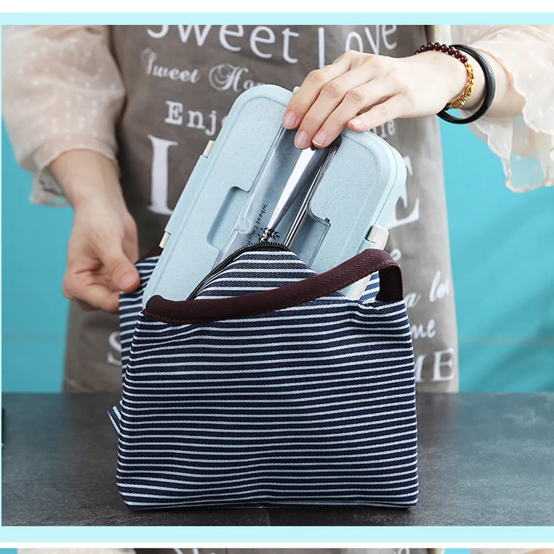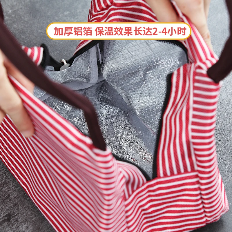 Женский портативный холст для обеденного мешка для отдыха, Изолированные сумки-холодильники в полоску, Термосумки для еды, пикника, обеда, сумки для детей, сумка для обеда