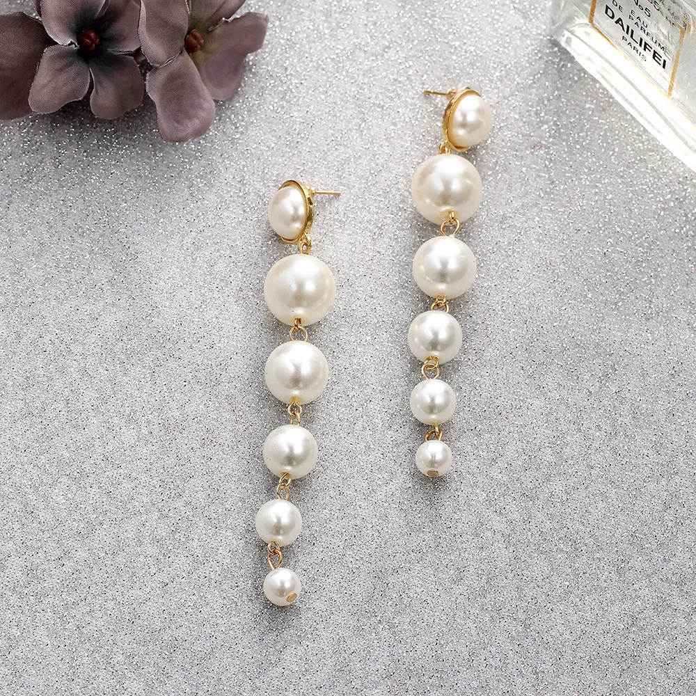 1 пара элегантных женских белых жемчужин металлическая Золотая Сережка-капелька длинные бусины шар кисточкой серьги-капельки с имитацией листьев ювелирные изделия подарок