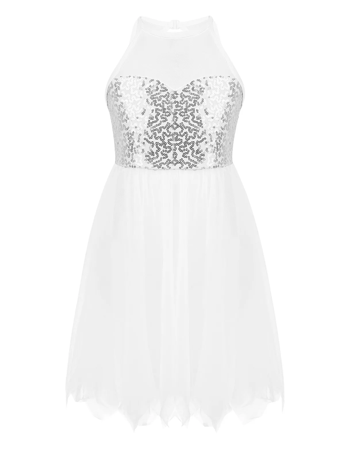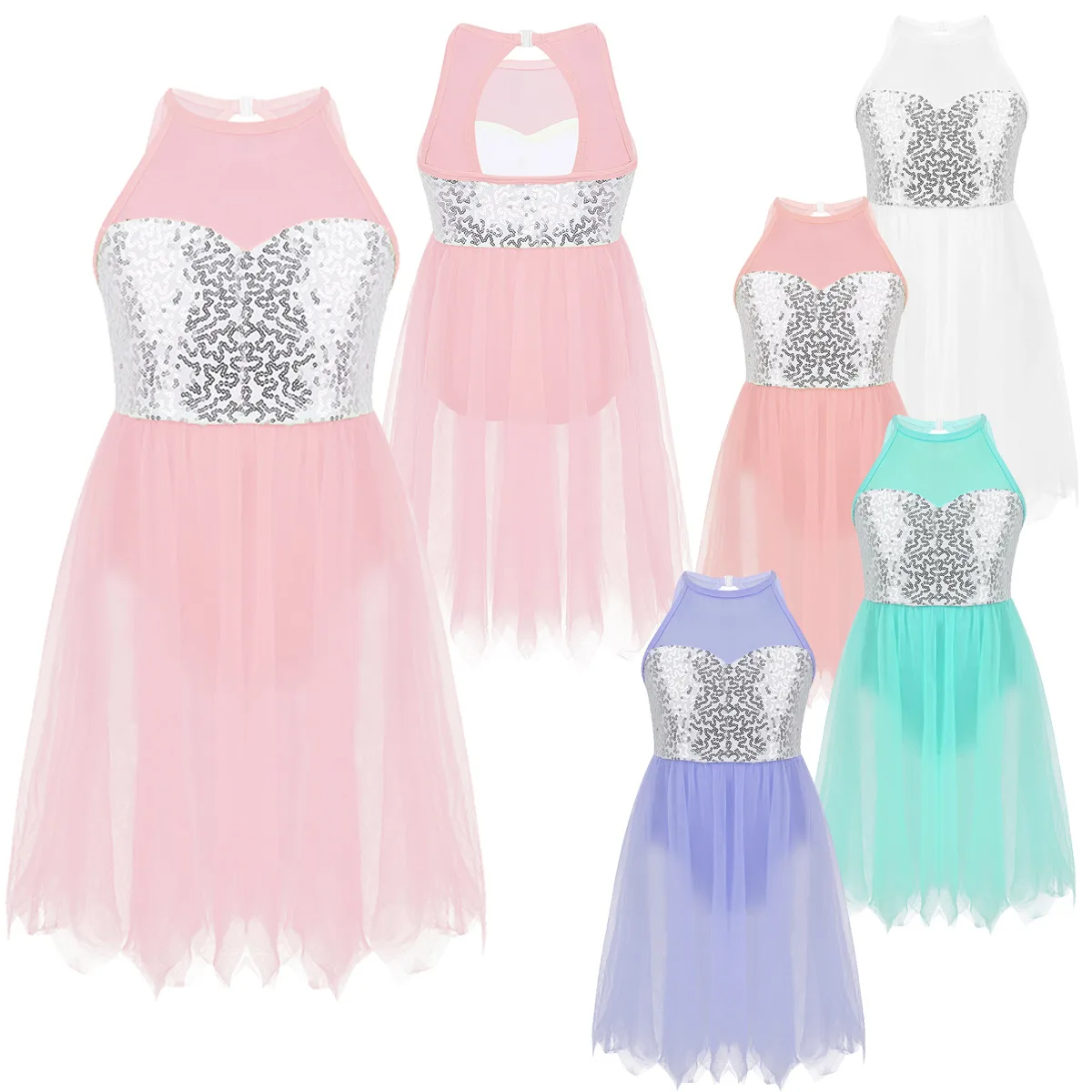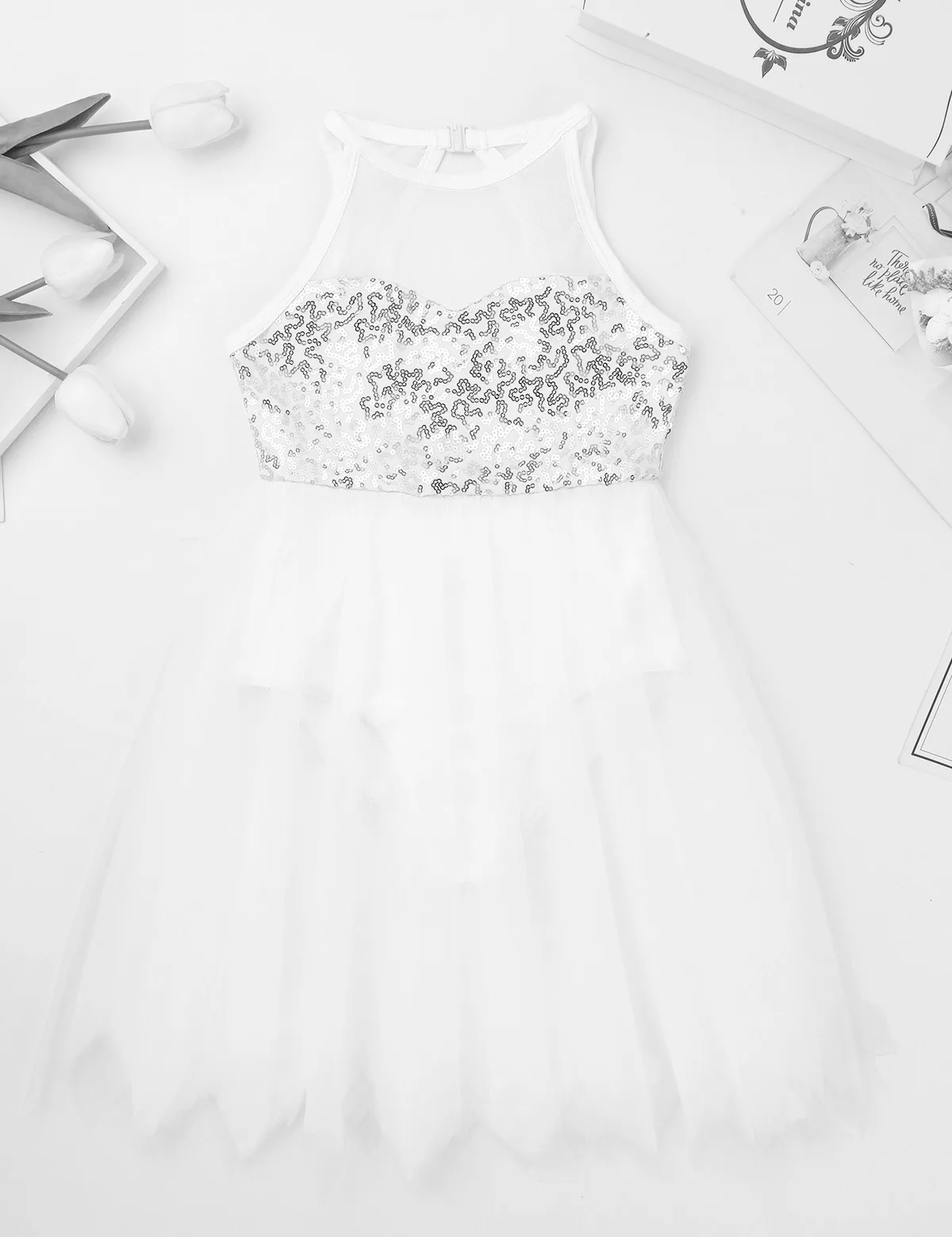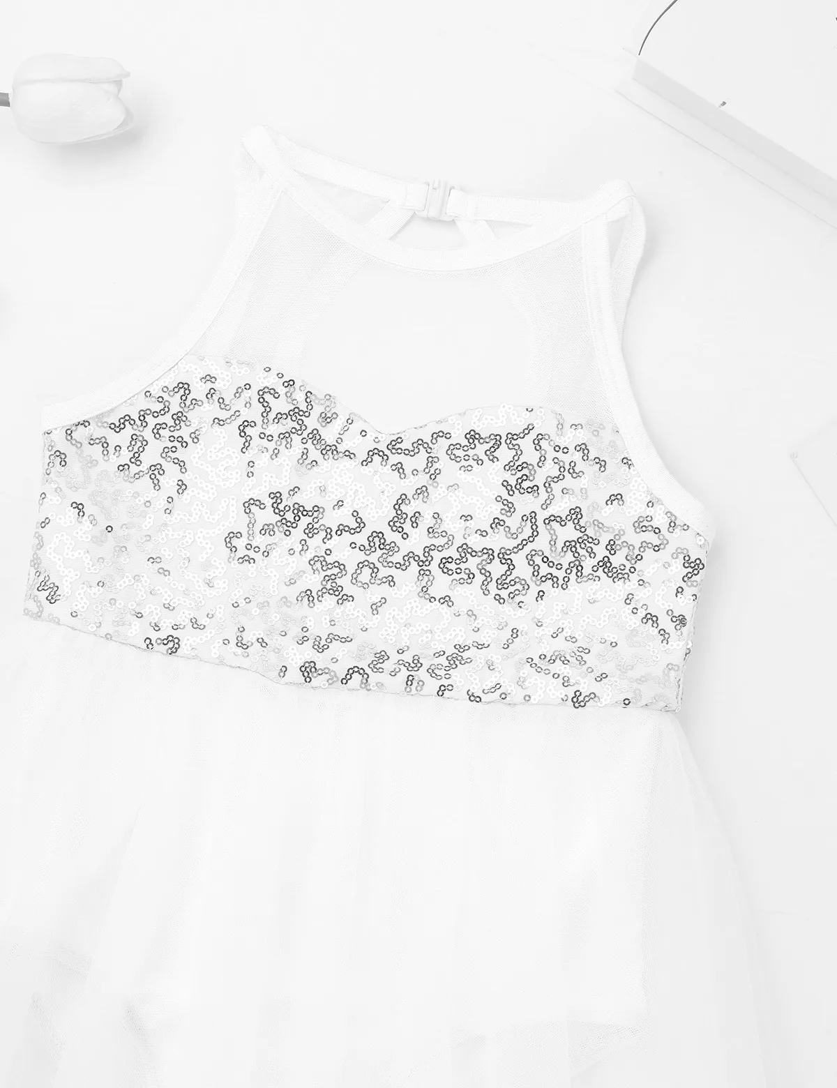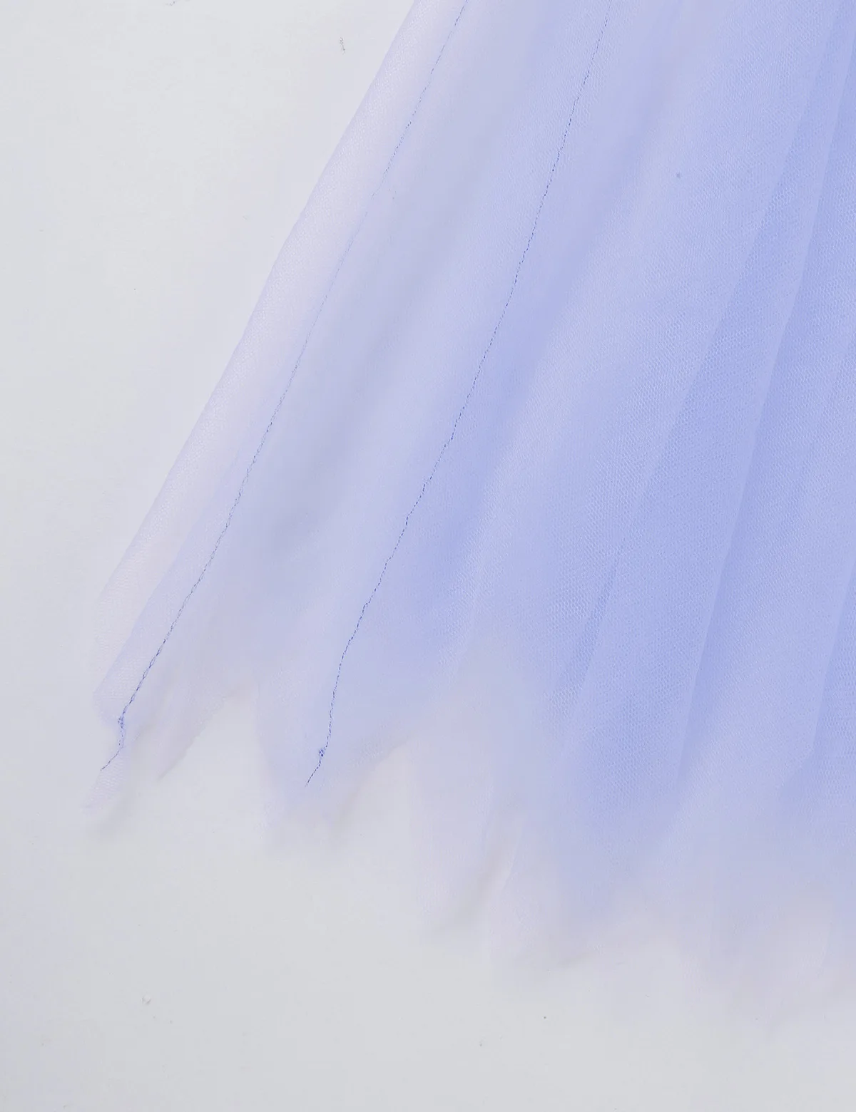 2 слоя сетчатой юбки с неровным подолом прикреплены вокруг талии. Красивая Одежда для танцев для вашей девочки.