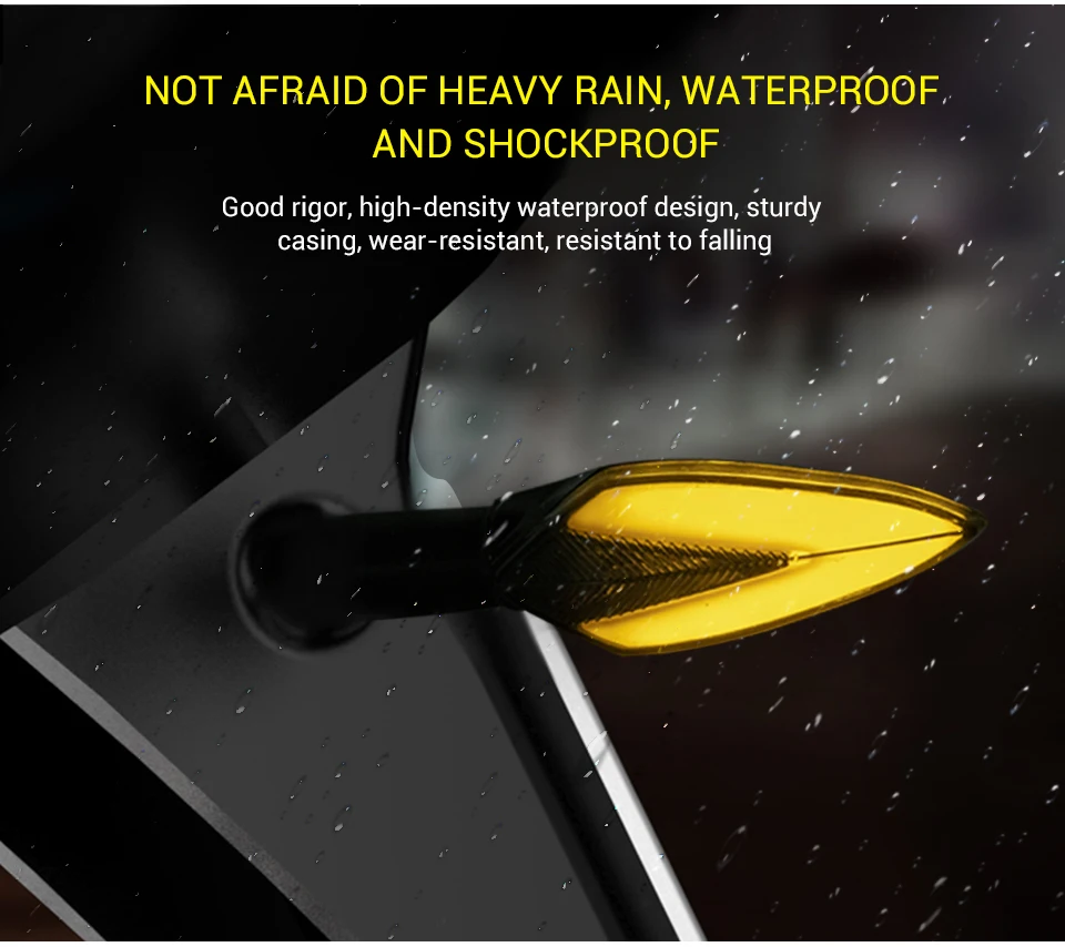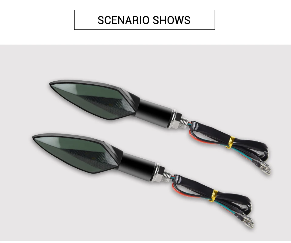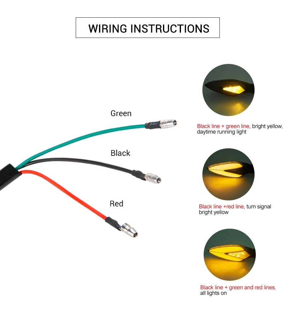Материал: АБС-пластик, Пластик Светильник: белый + желтый, красный + желтый, синий + желтый, желтый + желтый Размер: как на картинке Подключение: красный-положительный, черный-наземный Напряжение: 12 В постоянного тока Особая особенность: подающий сигнал поворота воды, гибкий, гибкий Подходят для большинства мотоциклов