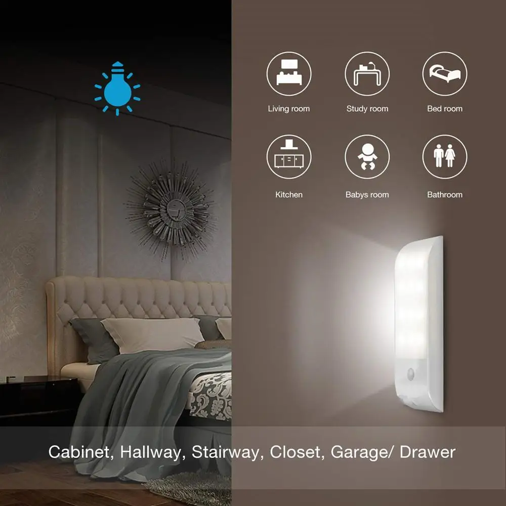Suitable for stairway, drawer, under-cabinet, pantry, bedroom, wardrobe, workshop, bookshelf, attic, closet, basement, hallway, corridor, headboard, trunk lighting, etc.