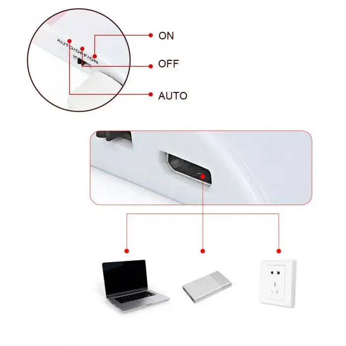 Rechargeable: Built-in 500mah lithium battery,It can last for 4 hours when fully charged at ON mode and Last 2 months at AUTO mode. Compatible with wall charger, PC USB port