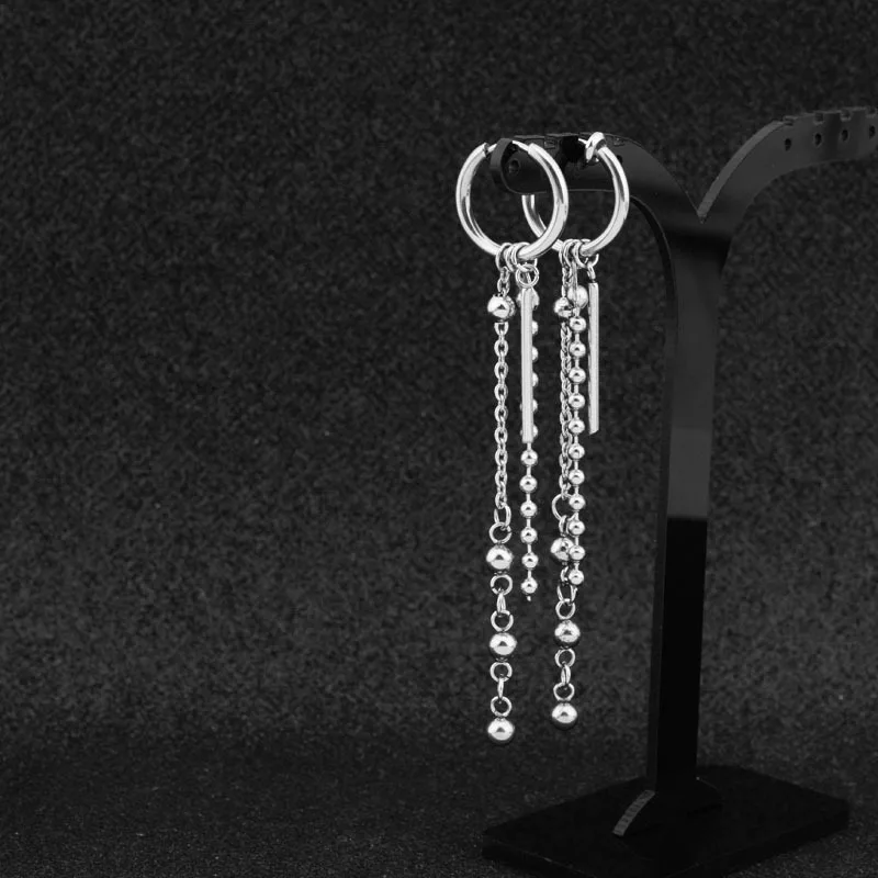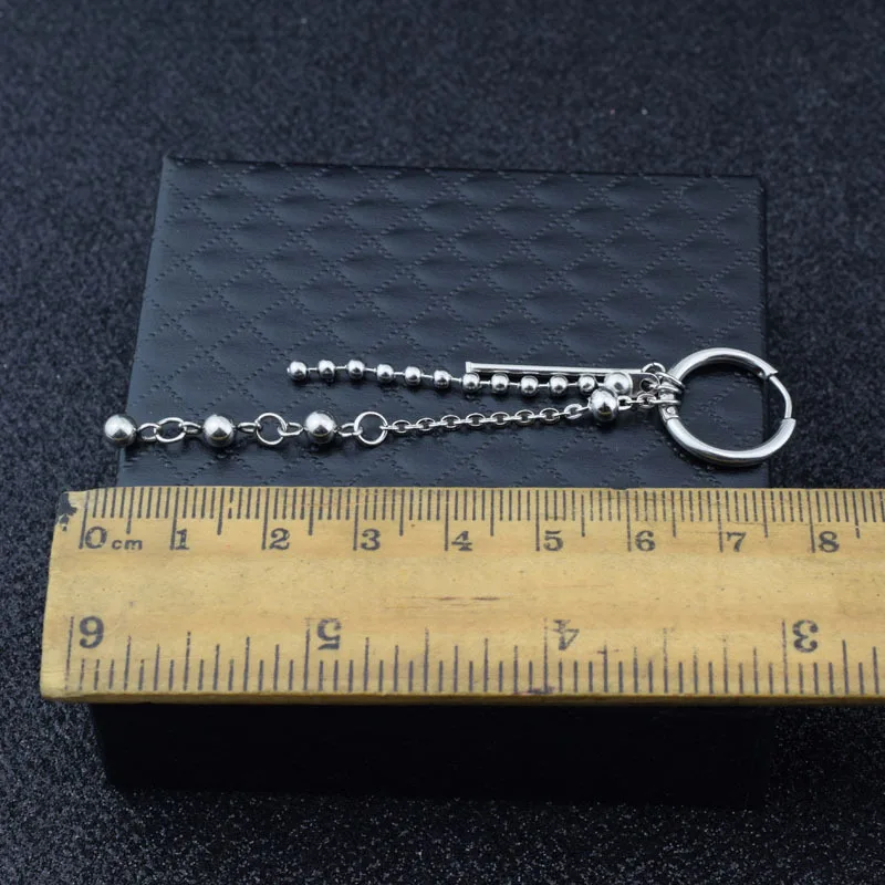 Длинные висячие серьги из нержавеющей стали с бусинами и кисточками для мужчин и мальчиков, модные серебряные серьги в стиле панк-рок, ювелирные изделия