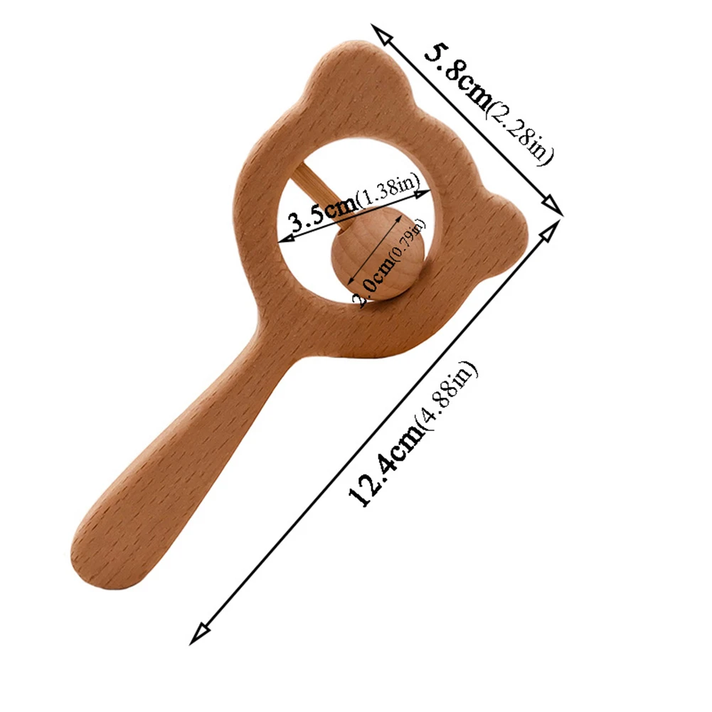 Деревянная ручка-прорезыватель в форме медведя, погремушка, колокольчик, Детские Жевательные бусы, прорезыватель, игрушка