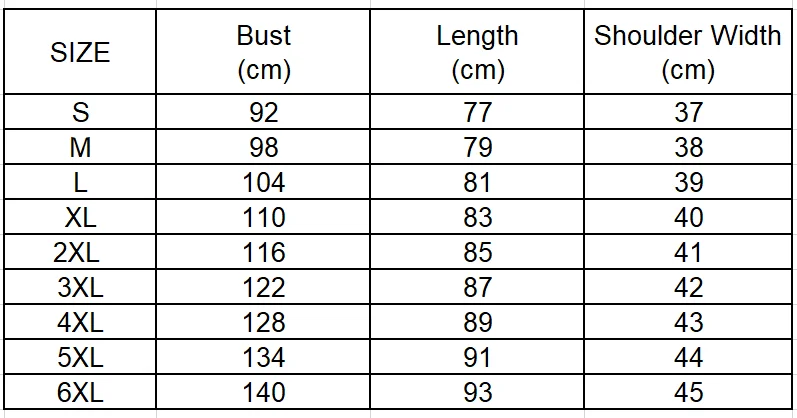 Таблица размеров