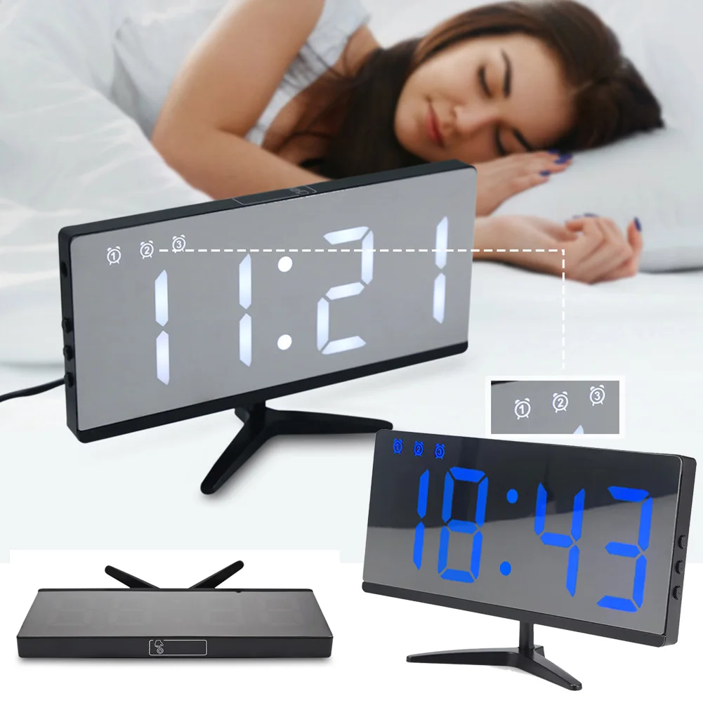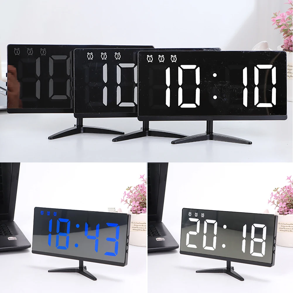 Светодиодный зеркальный будильник часы цифровой Повтор Настольные часы Пробуждение светодиодный светильник электронный дисплей температуры времени украшение для дома часы