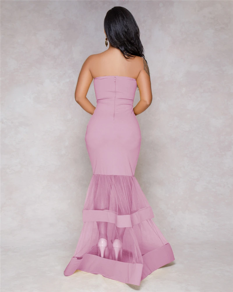 Adogirl Sheer Mesh Patchwork вечернее бальное платье в виде русалки женские сексуальные без бретелек Bodycon макси платья Распродажа Дешевые Vestidos