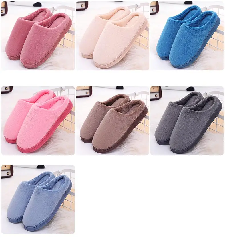 Зимняя теплая Домашняя обувь для пары однотонные женские плюшевые тапочки в японском стиле; нескользящие удобные домашние тапочки
