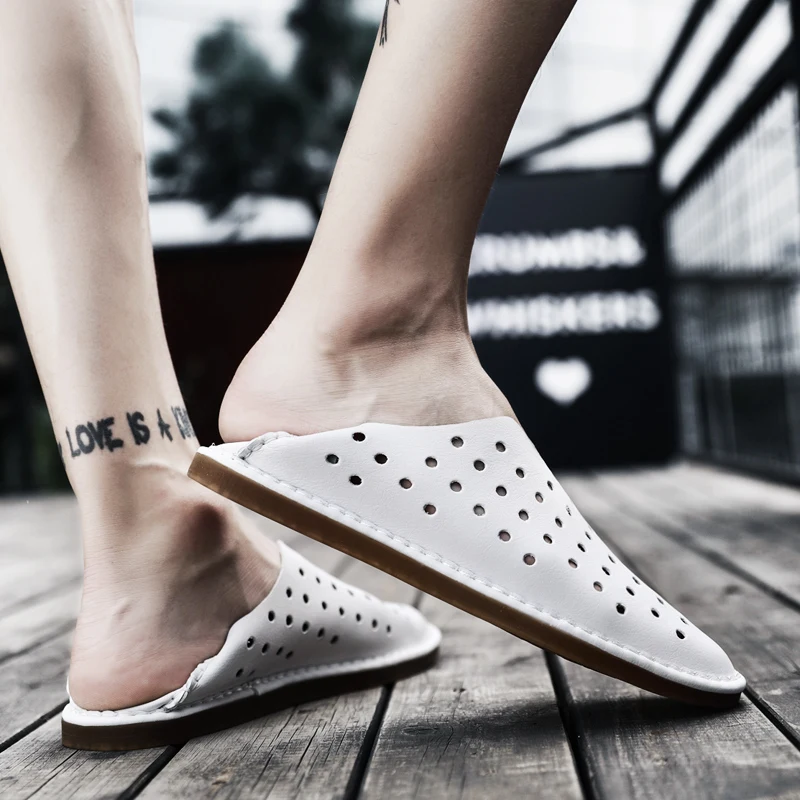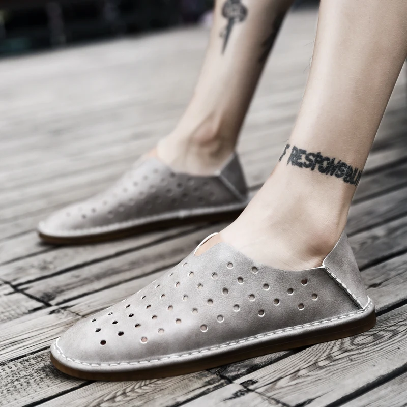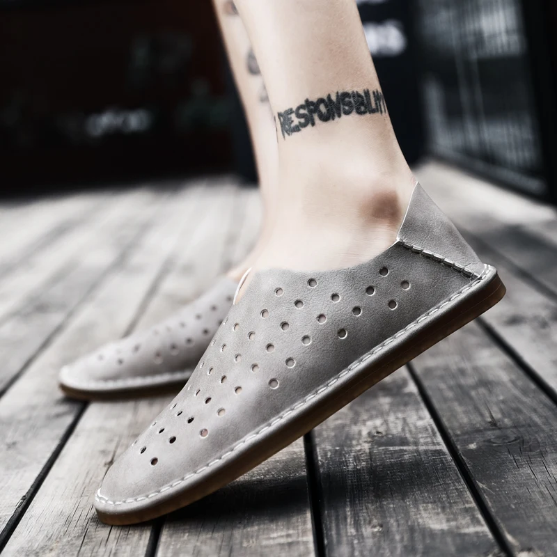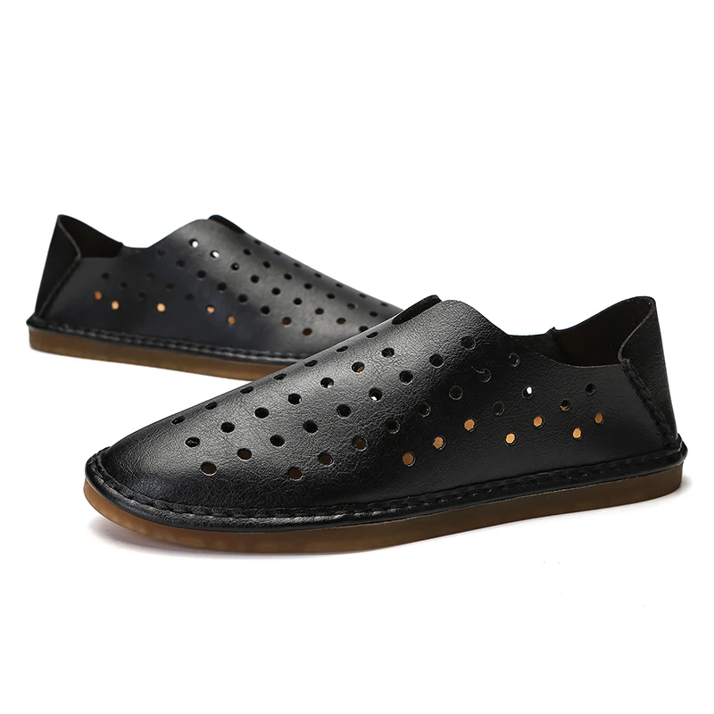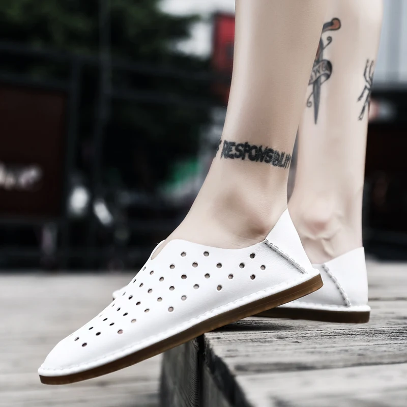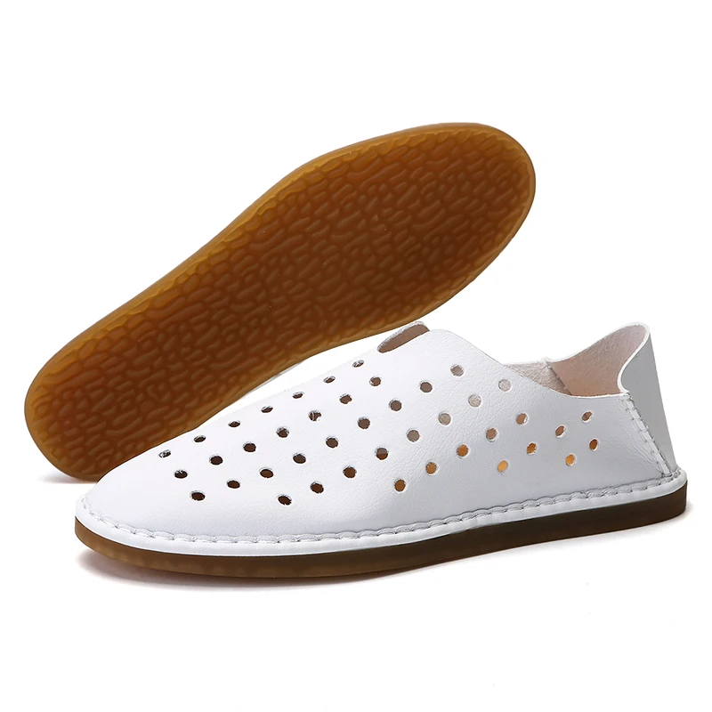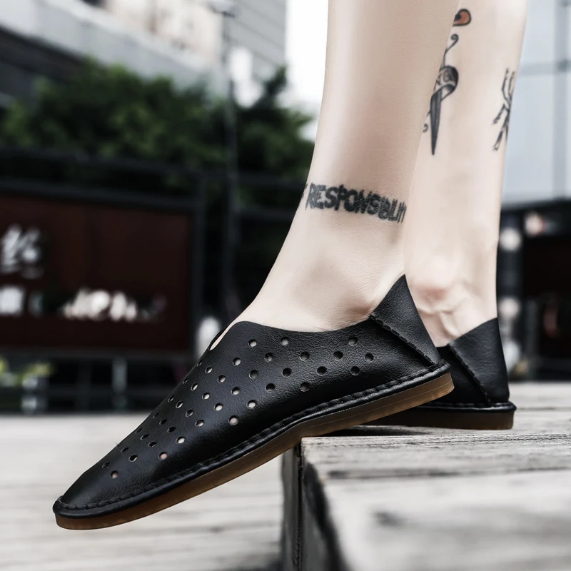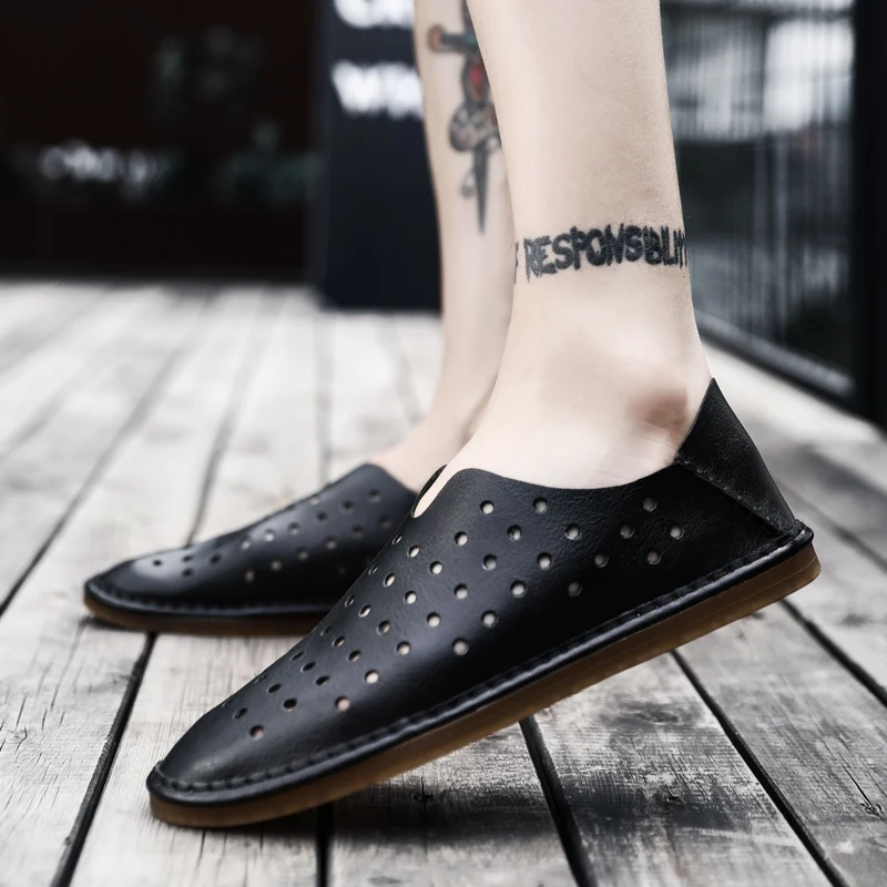 MARSON/мужская повседневная обувь; Модные кожаные лоферы для мужчин; Тапочки; Обувь без шнуровки на плоской подошве; Дышащий светильник; Обувь с перфорацией размера плюс