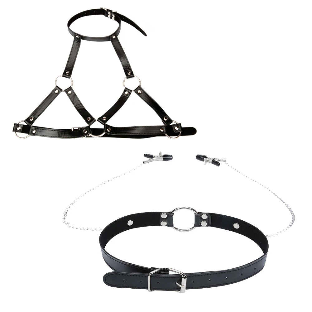 Женская искусственная кожа бондаж бюстгальтер БДСМ рот соски клип сексуальное нижнее белье