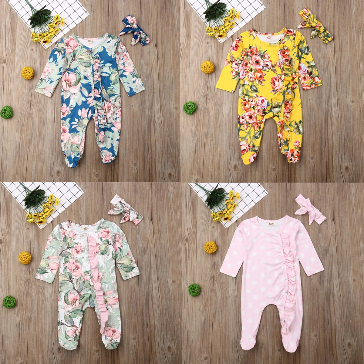 Милый Цветочный комбинезон для маленьких девочек, повязка на голову!