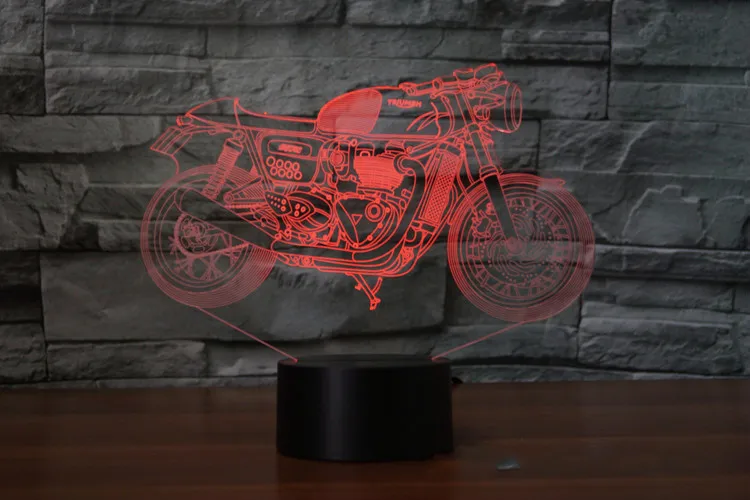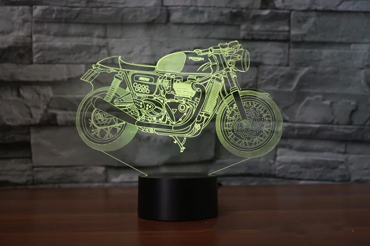 Мотоцикл 3d визуальная иллюзия Лампа Прозрачный Акриловый ночник Светодиодная Фея лампа Изменение цвета сенсорный Настольная лампа милый свет