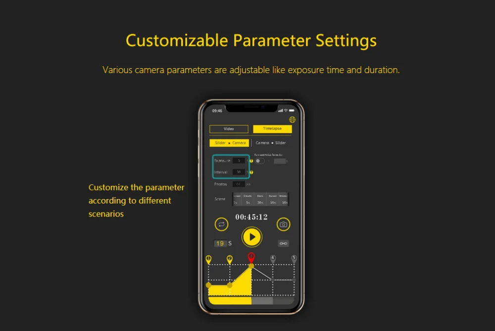 Калькулятор Timelapse; Регулируемая скорость с интуитивно понятным управлением
