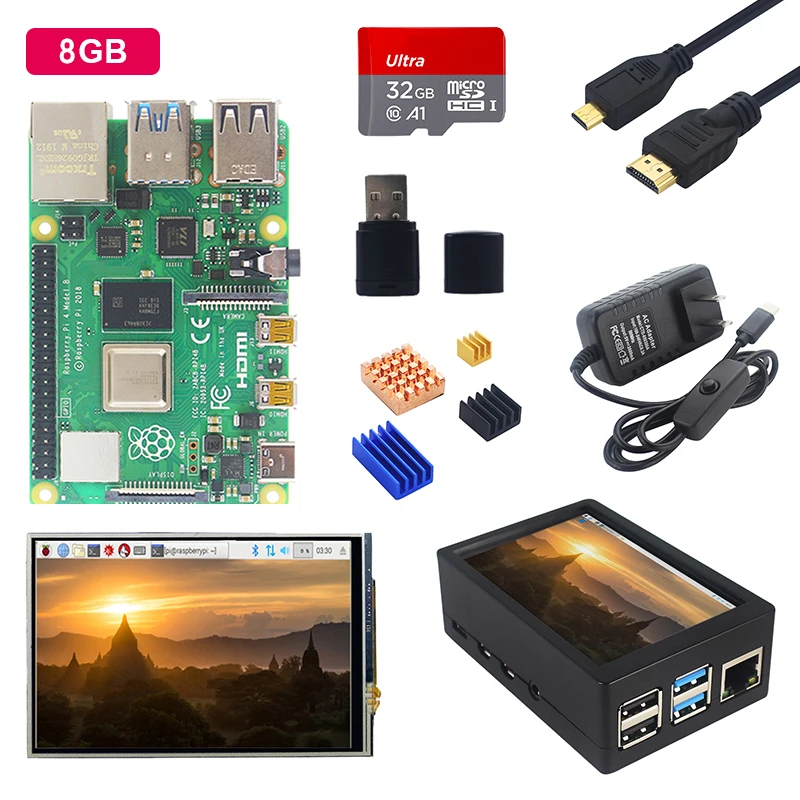 Raspberry Pi 4 Модель B комплект 2G / 4G / 8G RAM + 3,5 дюймовый сенсорный экран + чехол + блок питания + sd-карта + радиатор для Raspberry Pi 4