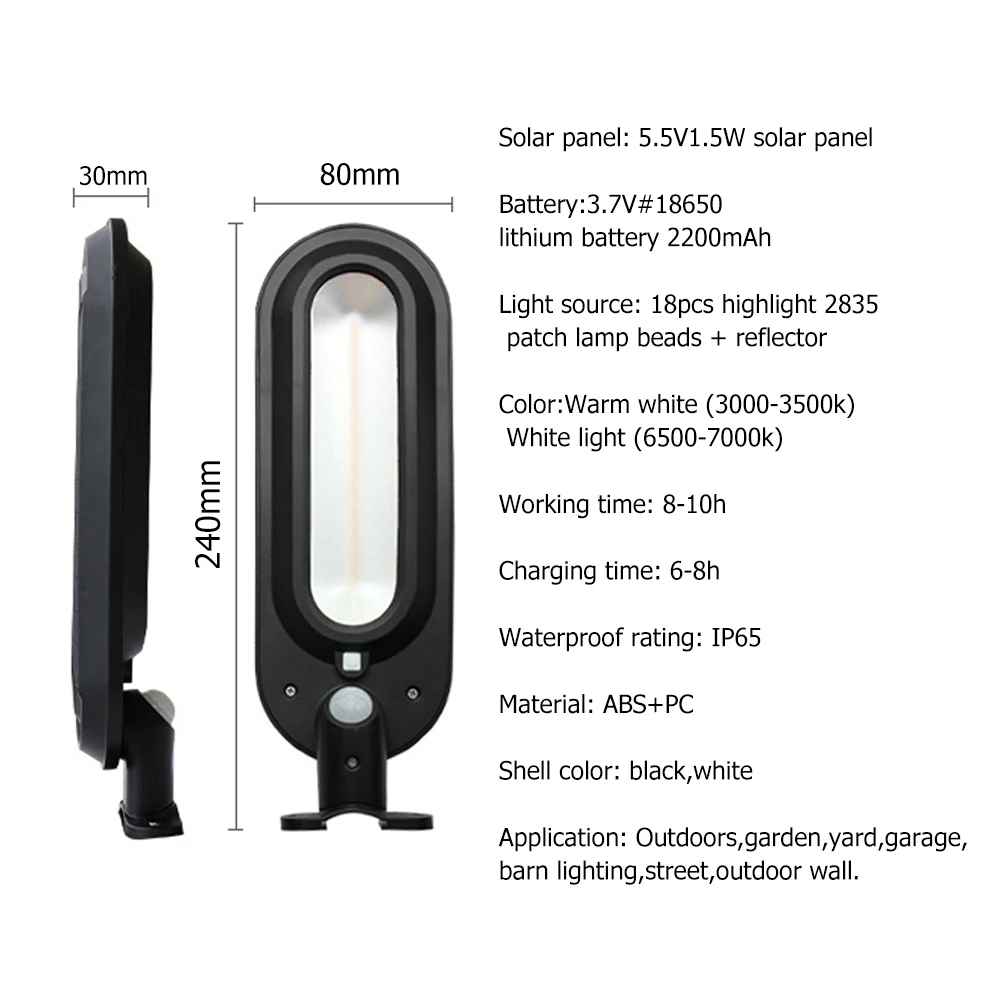 Расстояние срабатывания 8-10 метров, угол срабатывания 150 °, угол поворота 180 °.