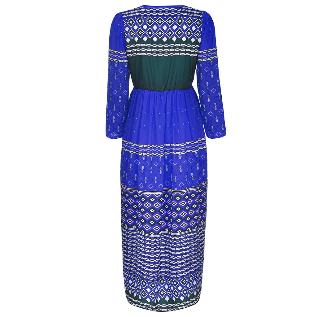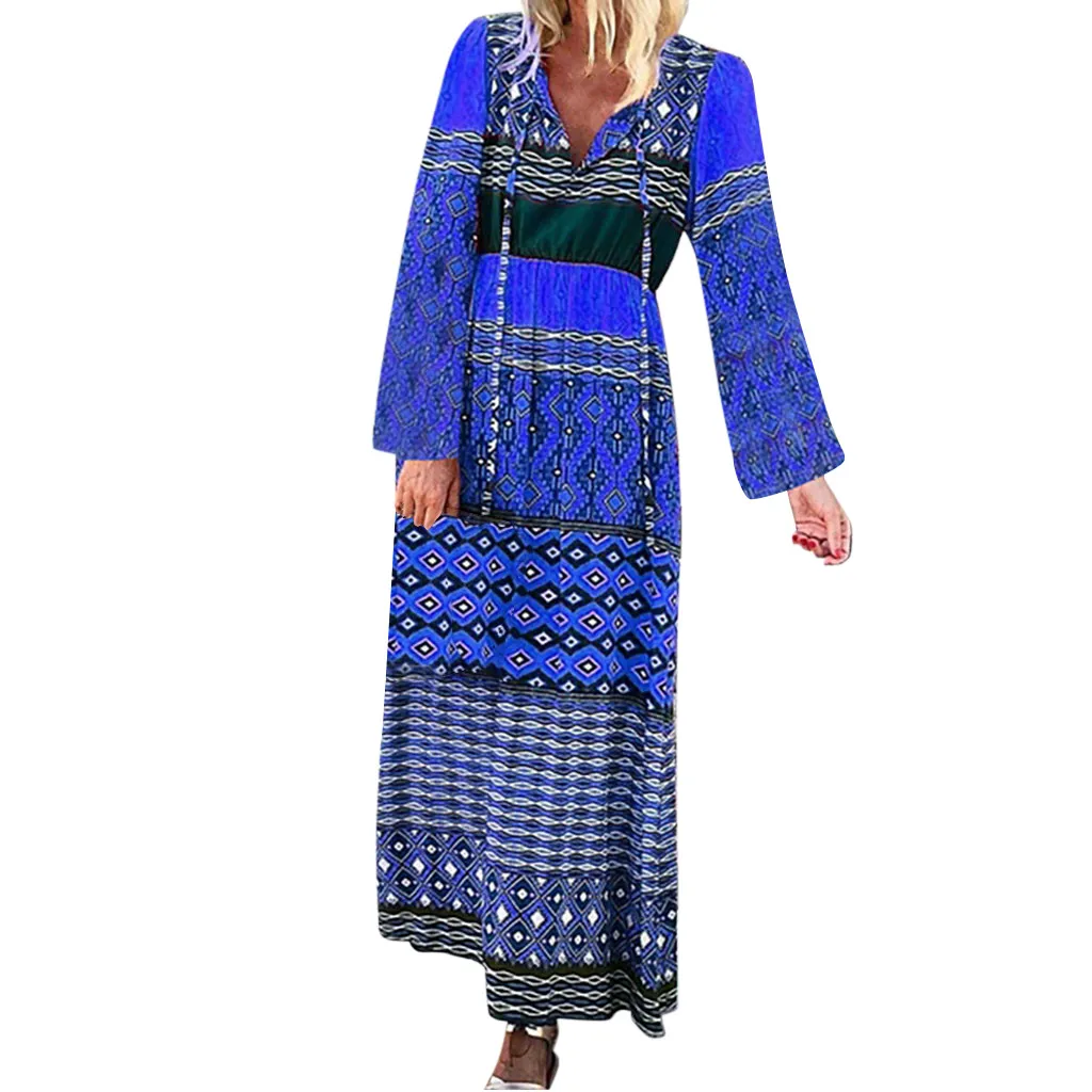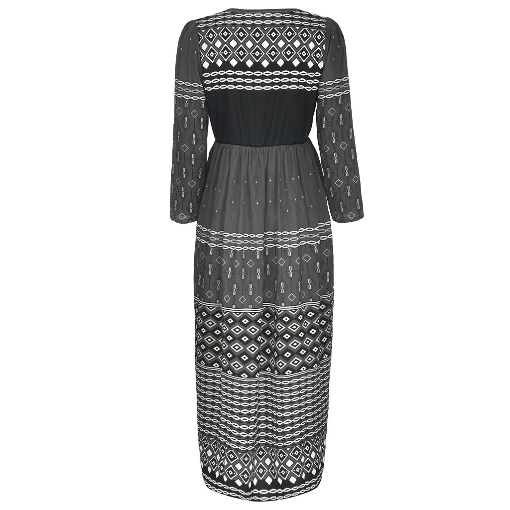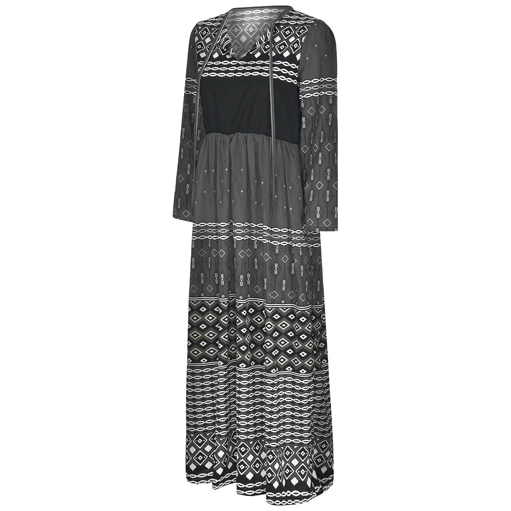 Женское платье макси с длинными рукавами и круглым вырезом, большие размеры