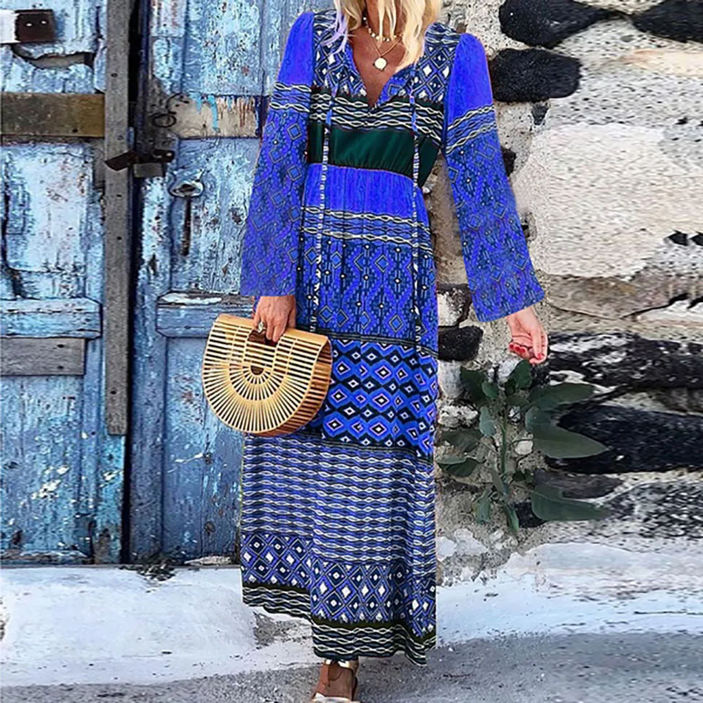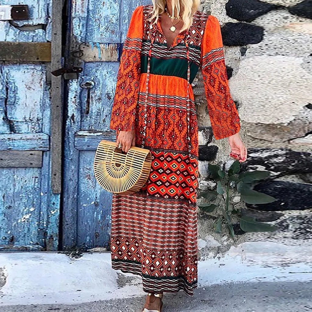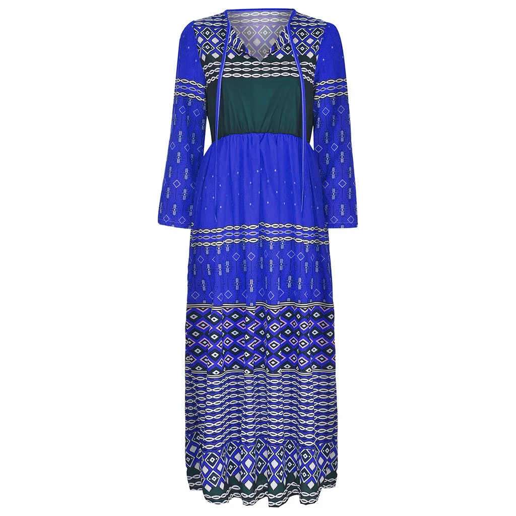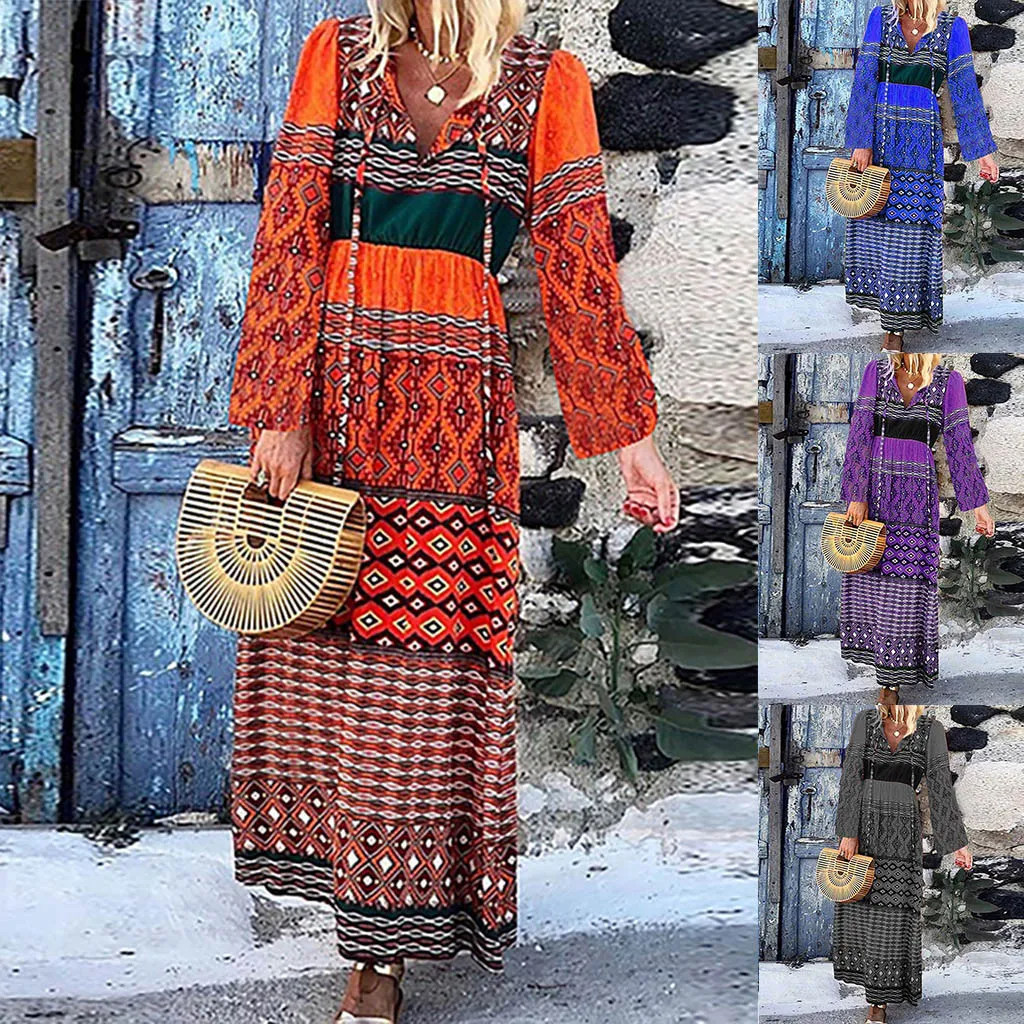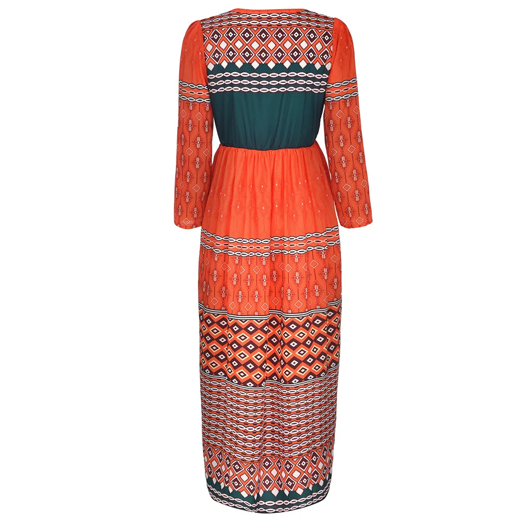 Женское платье макси с длинными рукавами и круглым вырезом, большие размеры