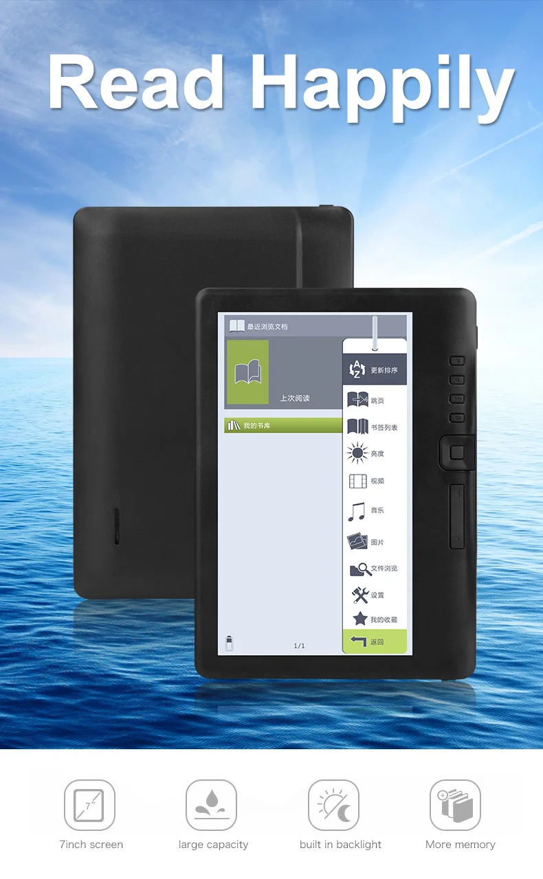 Название: электронная книга Reader 7 дюймов электронная книга 4 Гб черный Цвет: черный Экран: 7 дюймов Разрешение 800x600 Оперативная память: 512 Мб Внешняя память: до 32 Гб Формат электронной книги: epub, fb2, hmtl, pdb, pdf, rtf, txt, umd, doc Формат фото JPG, BMP, GIF, PNG Слайд-шоу является нормальным, музыка слайд-шоу Изображения для просмотра файлов, Прайс-лист Другое Увеличение/выход, поворот, панорамирование Формат записи не применим Подключение аудио не применяется Передача данных микро USB 2,0 High Speed Батарея: встроенная литиевая батарея 1200 мАч Напряжение зарядки: 5 В Совместимые системы s: системные требования Windows: XP, Vista, Win 7, Mac: 10,0 и выше Linux Поддерживаемые языки: 30 языков, включая английский, немецкий, испанский, русский, голландский и т. Д. Список: электронная книга * 1, адаптер питания * 1, гарнитура * 1, руководство * 1, защитная крышка * 1