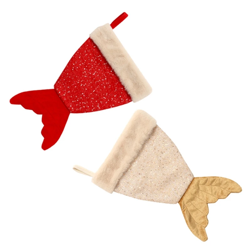 Рождественский чулок с подвесной веревкой в форме рыбьего хвоста, уникальная Рождественская Подарочная сумка, портативная Рождественская конфетная сумка (большой размер)
