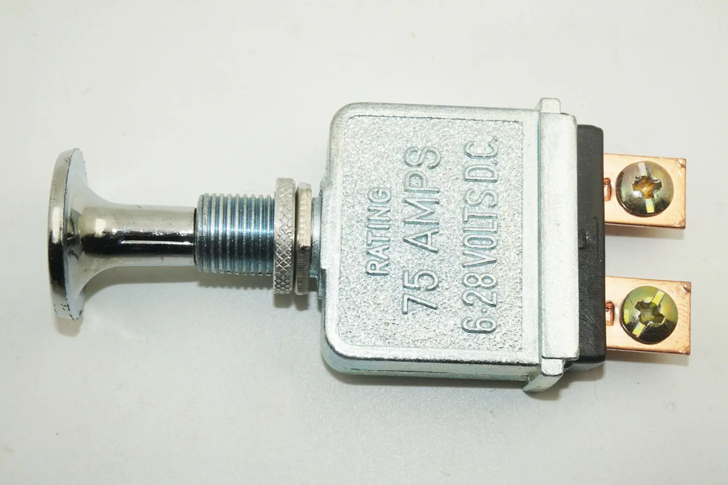 100% абсолютно новый и качественный. Эта покупка теперь предназначена для одного мощного кнопочного переключателя 75 ампер. Идеально подходит для горячей удочки, лодки, большой установки или гоночного автомобиля. 75 Ампер при 6-28 вольт постоянного тока. Хромированная металлическая ручка, отверстие для крепления 1/2" 2 Медь терминалы * Примечания: не включает коробку или розничную упаковку (товар будет надежно упакован в пузырчатый конверт).