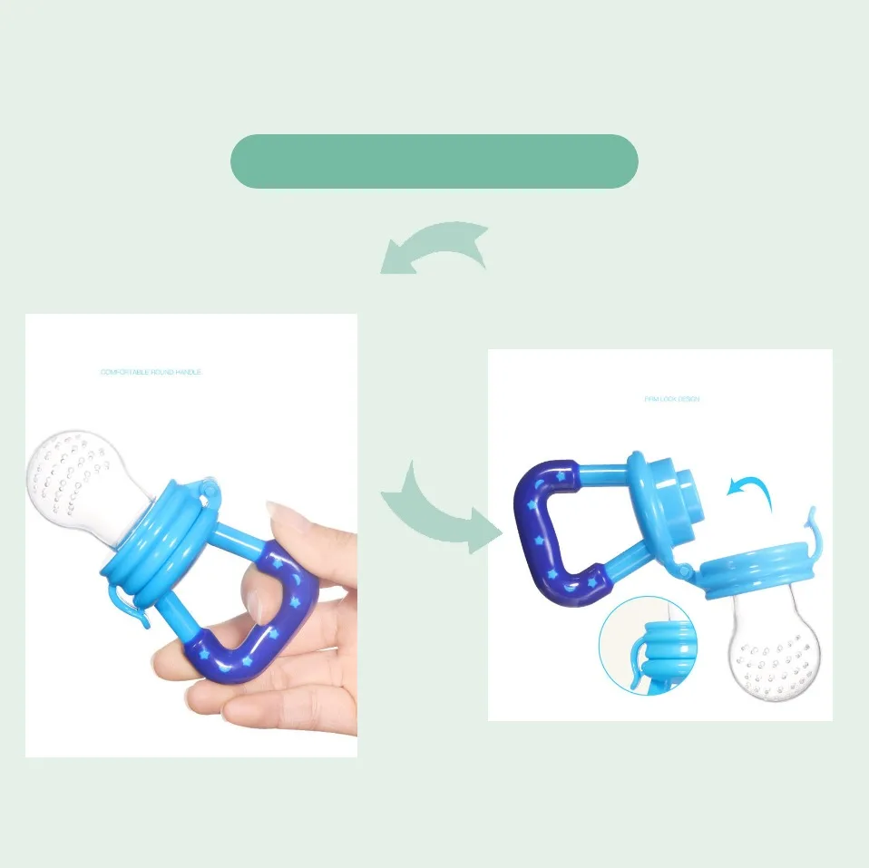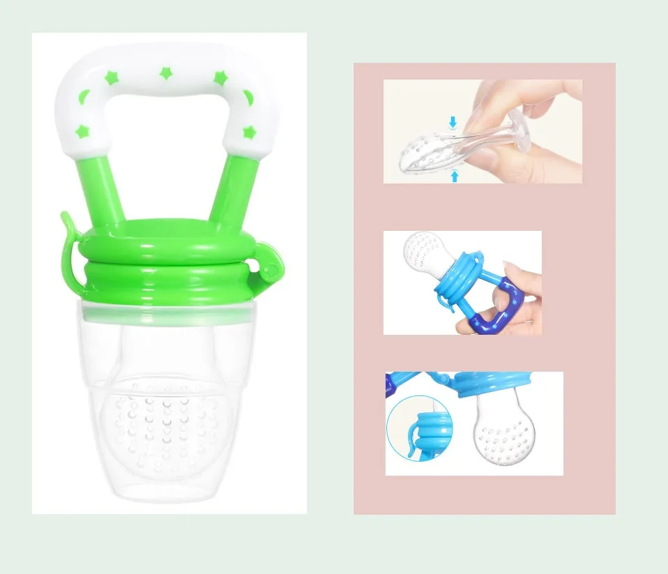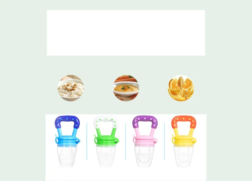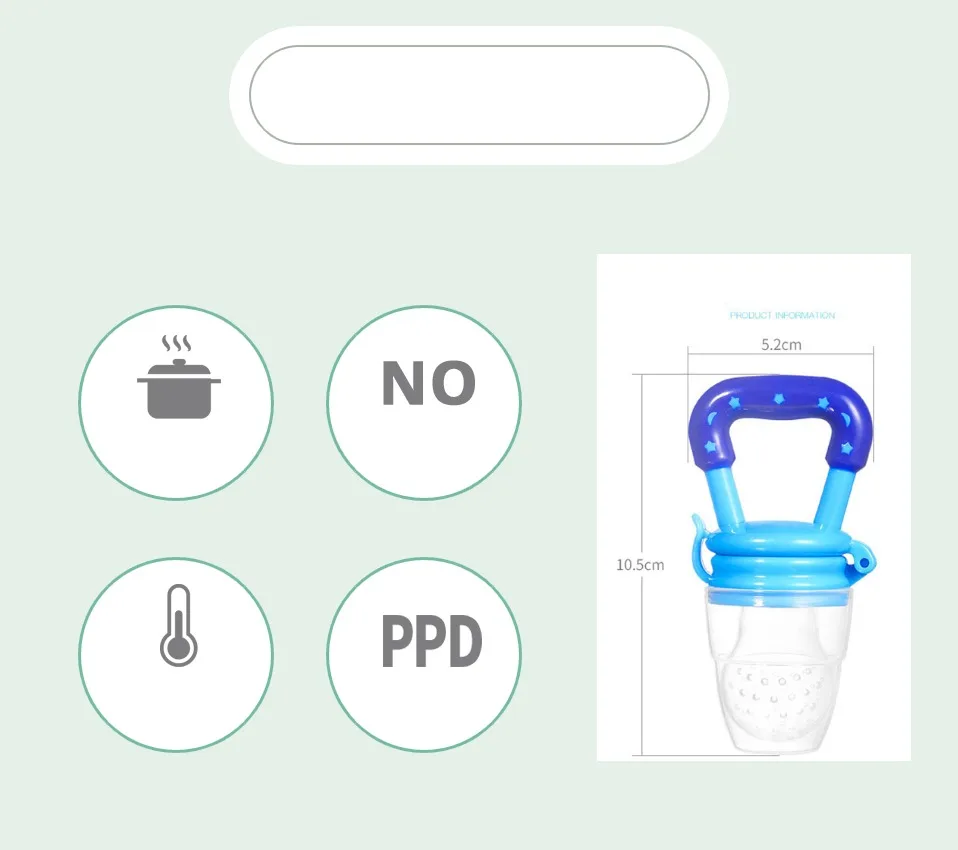 A1: Chewable music is a baby-assisted feeding tool that allows the baby to absorb the natural nutrients other than breast milk; the filter silicone mesh bag is suitable for the baby, and the baby is swallowed by chewing, the food becomes muddy and juice, and it is very safe. When the baby is crunching, he exercises the coordination of the baby's hands and mouth; it is good for the baby's long teeth, the development of the brain, and let the baby speak early; it is conducive to training the baby's independent personality in the future.