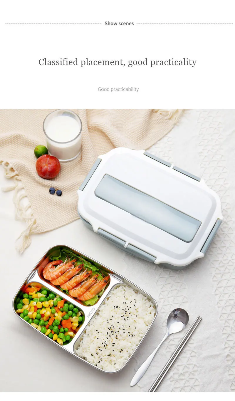 1. Stainless steel material avoids direct heating in the microwave oven, and the food can be transferred to the PP lunch box when heated.