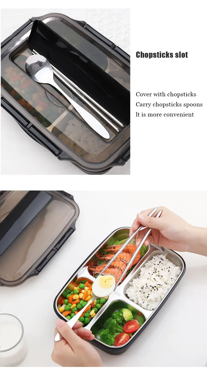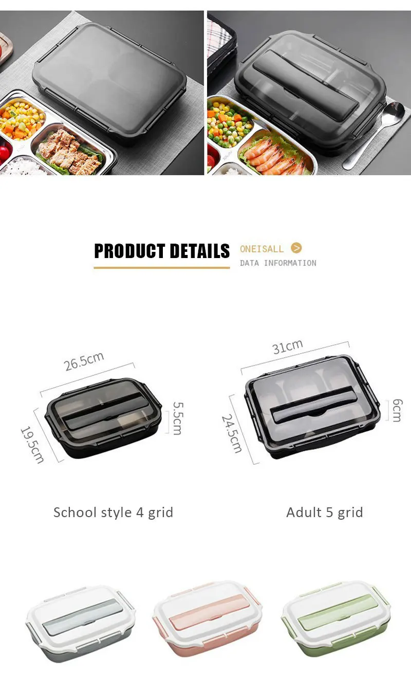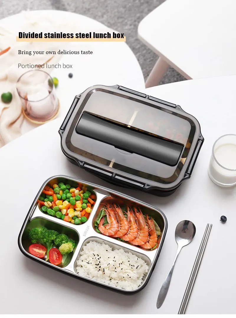Quality Stainless Steel Lunch Box Containers With Compartments Portable Sealed Leakproof Bento Food Container With Tableware