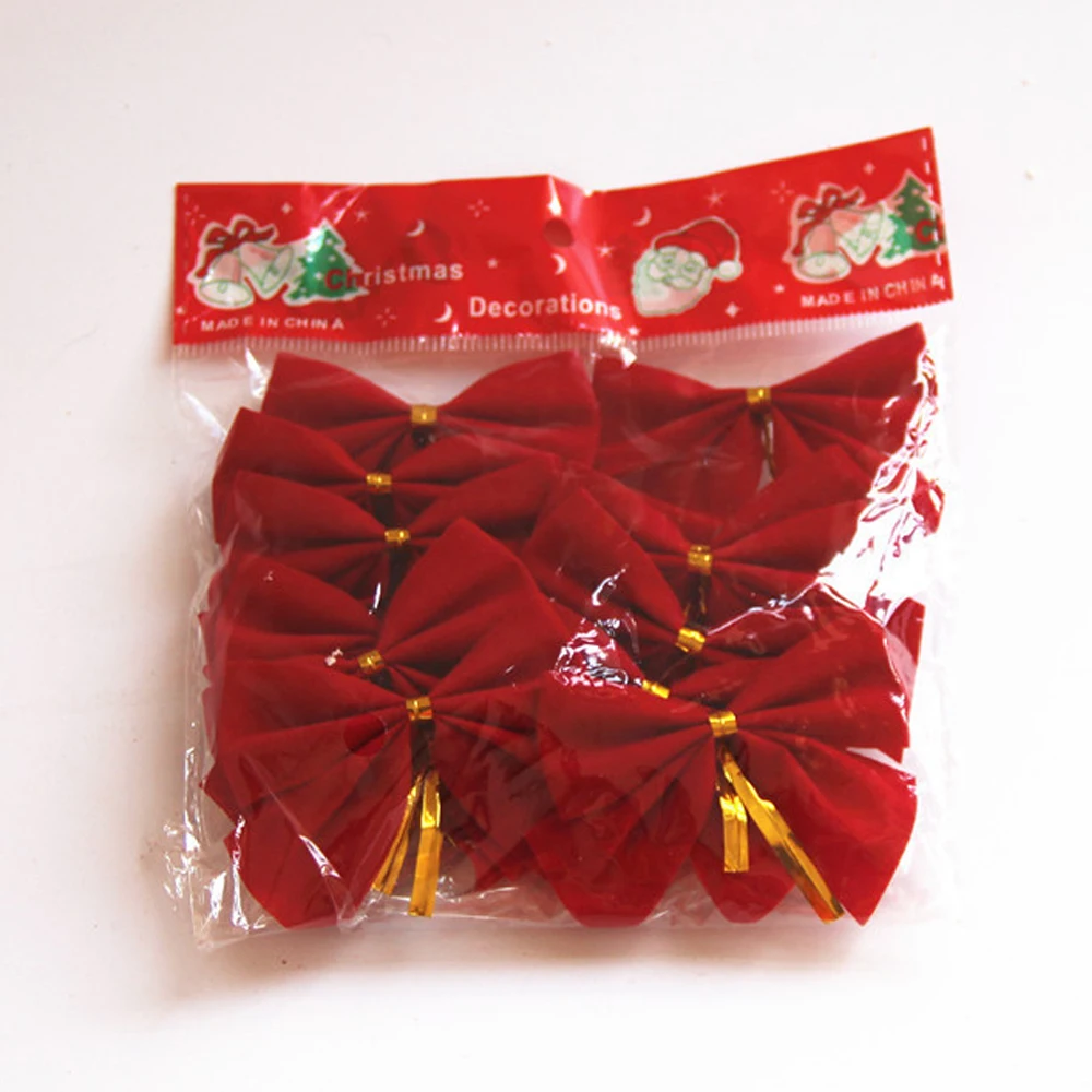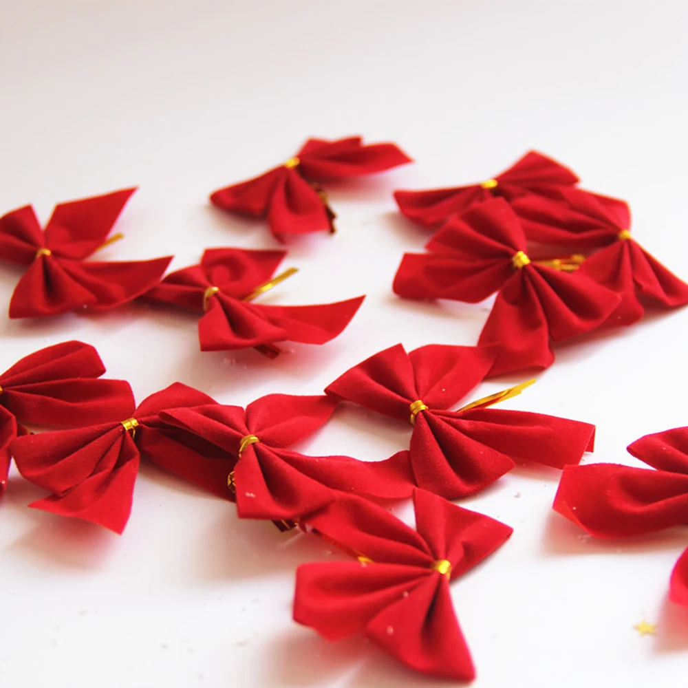 12 шт., красный красивый бант, украшение рождественской елки, вечерние украшения для дома, новогоднее Рождественское украшение, 5*5 см
