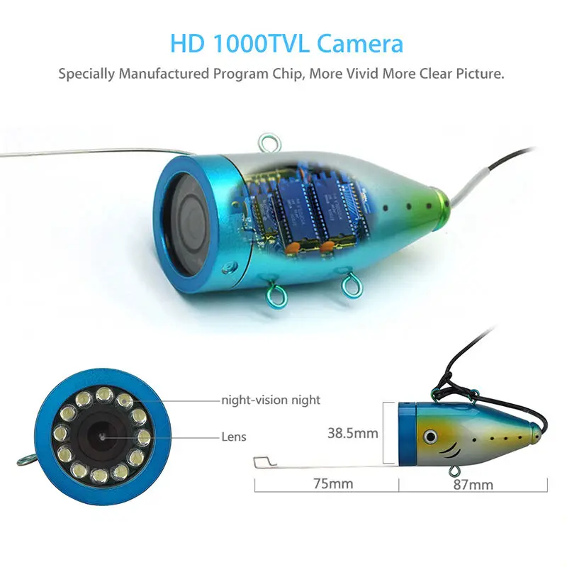 Особенности: 1. 7,0 дюймовый TFT большой дисплей приносит вам широкий угол изображения. Со съемным солнцезащитным экраном, 2. Металлический корпус: прочный, прочный и легко излучающий. 3. HD 1000 телевизионная линейная камера, обеспечивает супер четкое изображение. 4. Функция включения/выключения света: освещение регулируется, вы можете выключить его при необходимости. 5. Дизайн модели рыбы, водонепроницаемый и прочный алюминий сплав материала на корпусе камеры. 6. Морозостойкие, водонепроницаемые и тянущиеся. 7. С кольцами для фиксации кабеля вдоль удочки. 8,6 шт. пластиковых катушек, чтобы вы могли легко закрепить камеру через телескопическую удочку. 9. Высококачественная литиевая батарея на 4500 мАч, может непрерывно работать до 7-8 часов. 10. Легкий и маленький размер, который очень удобен для вас, чтобы носить с собой куда угодно 11. Идеально подходит для мониторинга аквакультуры, подводных исследований, Океанской/ледовой/озерной рыбалки, подводного спасания и т. Д. 12. Водонепроницаемый уровень: IP68 13. Максимальный подшипник-30 кг. Параметры: Зарядное устройство: 100VAC-240VAC DC12.6V 1000mA Батарея: литиевая батарея 4,5 мАч, непрерывное использование времени аккумулятора до 10 часов. : Материал подошвы: полиуретан толщина дополнительно 15 Вт, 30 Вт, 50 м Изображения: цвет Расстояние обзора: 0-5 м Давление: 0,5 МПа Разрешение: 1000TVL Напряжение: 12VDC Рабочая температура:-20-60 градусов Температура хранения:-30-80 градусов Размер упаковки: 24,5*14*22 см Вес: 2 кг Посылка включает в себя: 1x7 дюймов TFT ЖК-дисплей Дисплей 1 х камера с кабелем 1 х литиевая батарея 4500 мАч 1 x Зарядное устройство 1 х Большой Поплавок 1 x Бесплатный простой солнцезащитный козырек 8 x Металлический Cilps 6 x пластмассовые катушки Руководство пользователя (1 шт.) 1 x Алюминий коробка