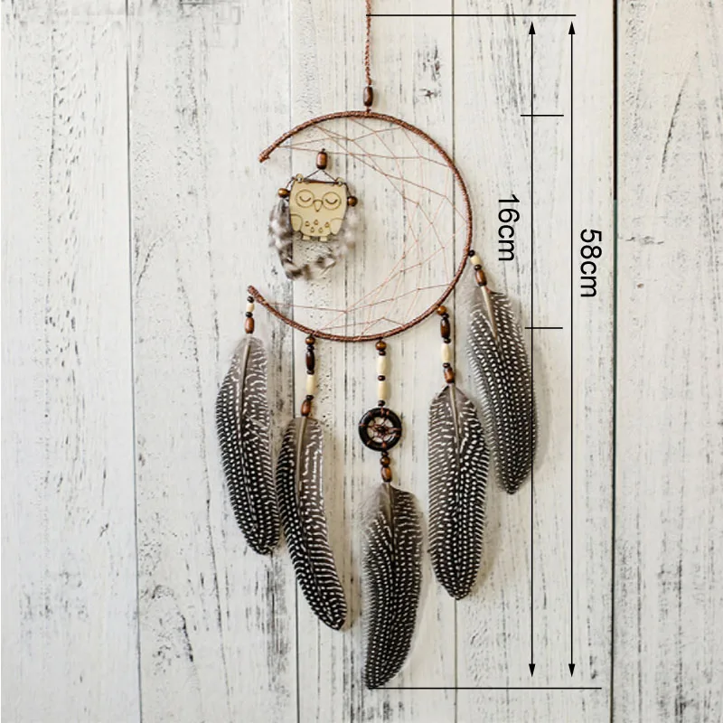 Луна в сове Ловец снов перо ремесла колокольчики ручной работы декорацион Hogar Nordico индийский стиль кулон Ловец снов подарок