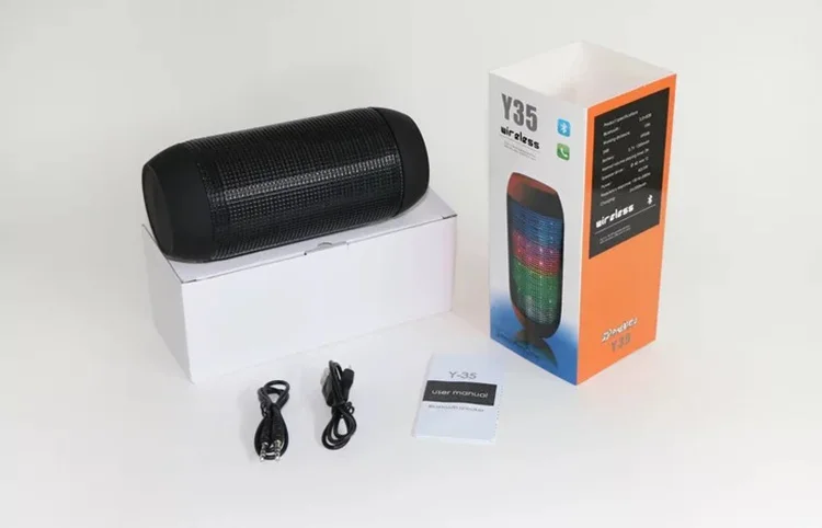 1. Модель: HBR-Y35 2. Название: светодиодный портативный bluetooth-динамик 3. Материал: АБС-пластик 4. Емкость аккумулятора: 1200 мАч 5. Мощность: 6 Вт 6. Расширение памяти: поддержка 7. Размер продукта: 180*80 мм 7. Вес нетто продукта: 0,60 кг 8. Размер упаковки: 20,5*8,5*8,5 см