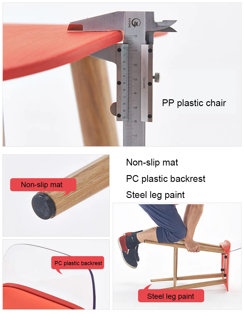 3. Стул из полипропиленового пластика, подходит для людей разных размеров 4. Анти-скольжения Мат ПК пластиковая спинка Сталь ноги краски