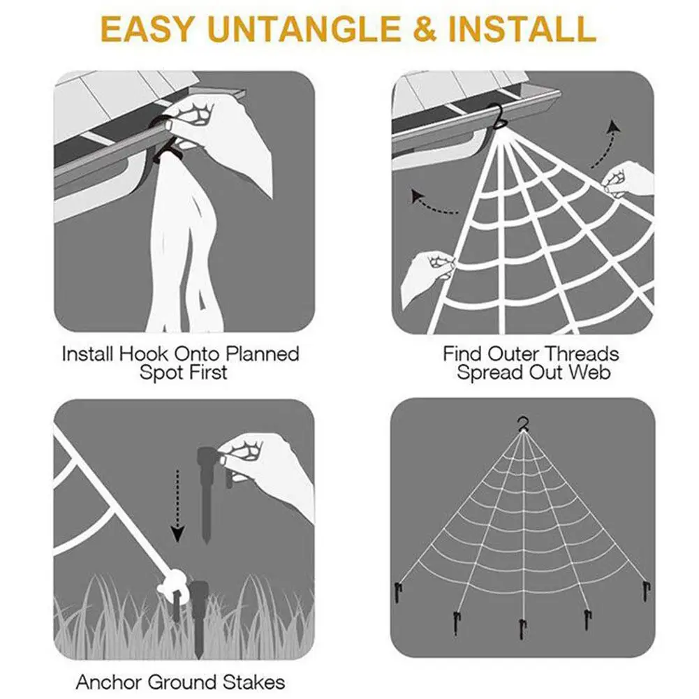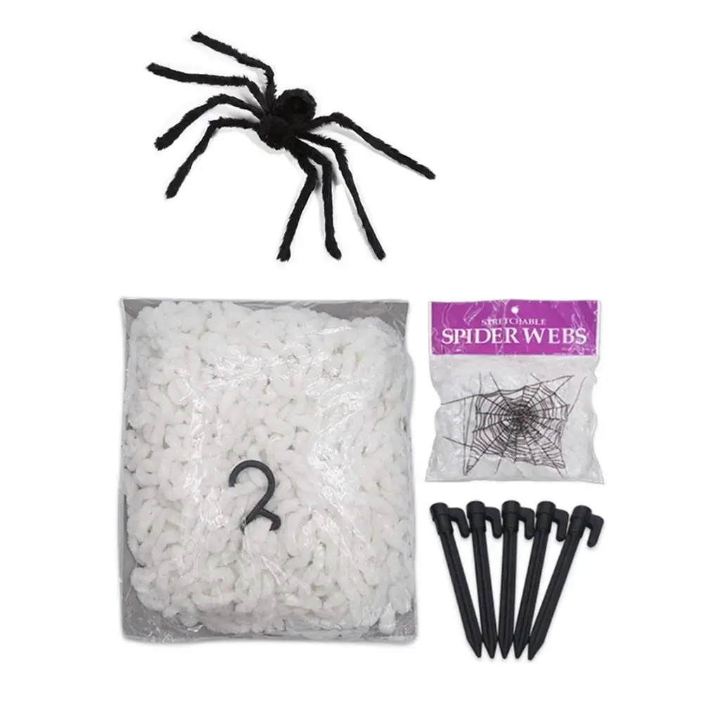 1 * Паутина (с колышек для настила + крючок) + 1 * паук хлопок (в том числе 2 маленьких паука) + 1 * Черный Паук