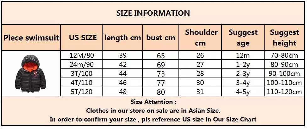 Size Chart: Please kindly refer to your kids actual height and the size chart before buying/bidding. Thanks. PLZ allow 1-3cm measure error while choosing the right size for your child according to the following size chart.