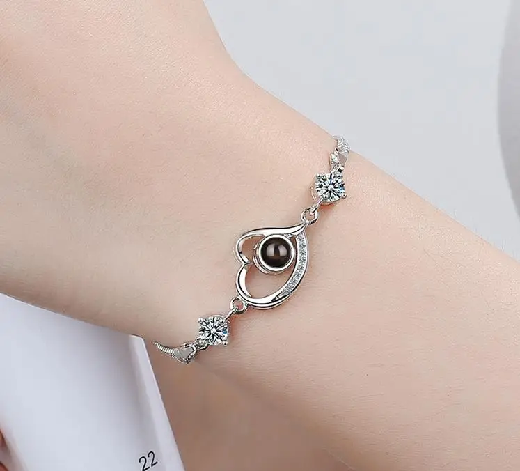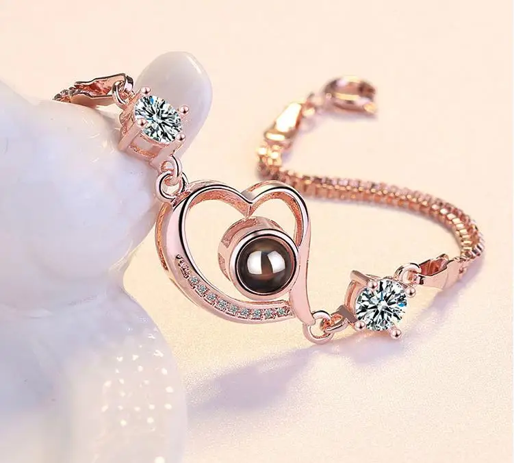 Новый микро-резной проекционный браслет в форме сердца, 100 языков, я люблю вас, дамы, память, ювелирный подарок