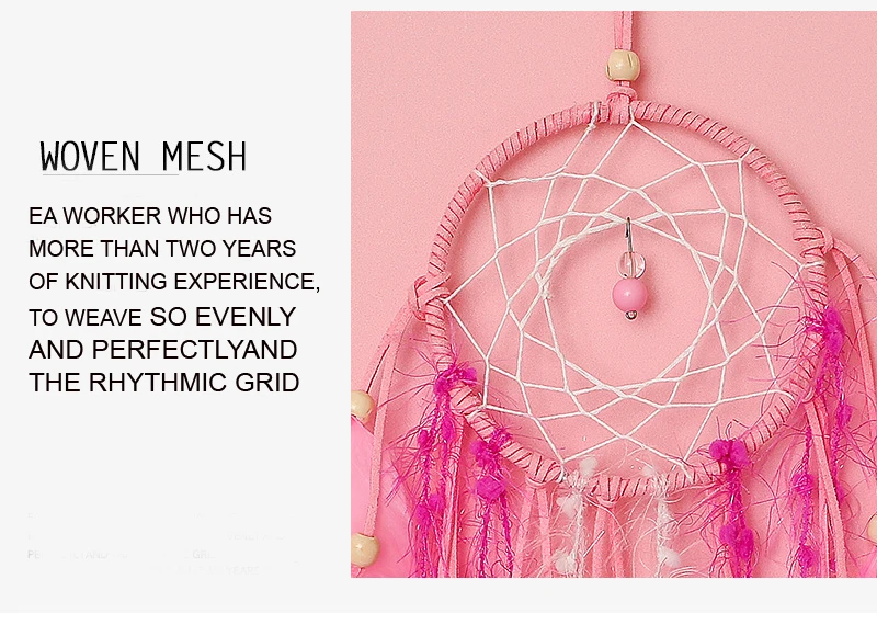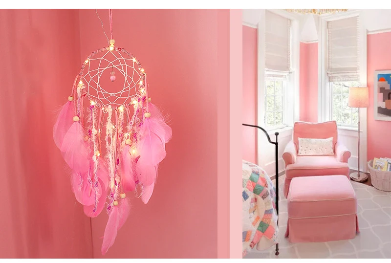 Розовый Ловец снов в скандинавском стиле, подвесные поделки из перьев, колокольчики для девочек, романтические подвесные украшения, подарок