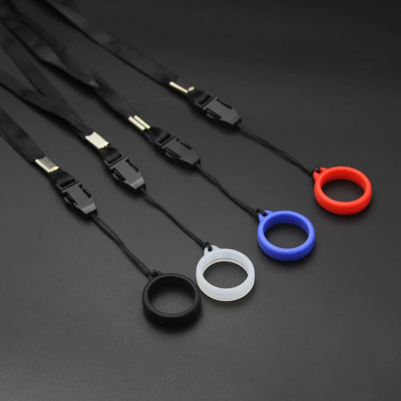 Packing: 5PCS/bag color:black silicone ring diameter: 20mm Landyard: detachable hanging cord