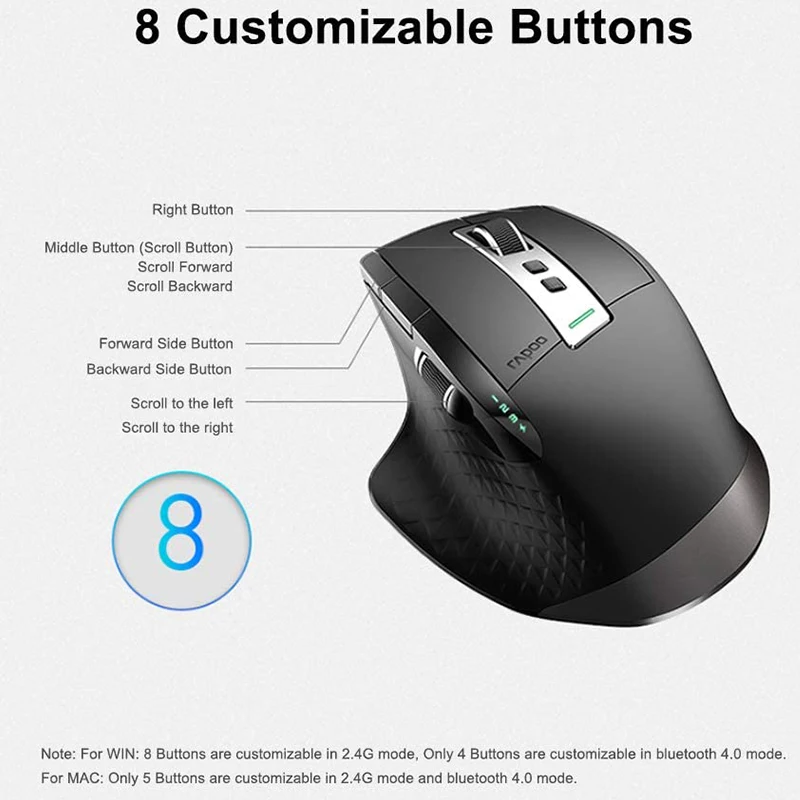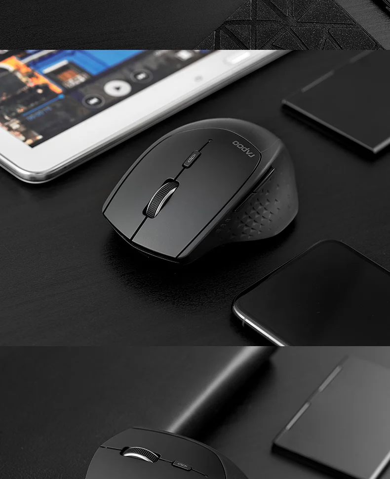 ✅Умный переключатель между Bluetooth 3,0, 4,0 и 2,4G Умный переключатель между Bluetooth 3,0, 4,0 и 2,4G обеспечивает стабильную беспроводную передачу. Вы все еще можете использовать мышь независимо от нехватки usb-порта или потери приемника. Надежное Подключение до 10 метров. ✅Интеллектуальное переключение между несколькими устройствами MT550S интеллектуально подключается к рабочему устройству. Он одновременно подключается к 4 устройствам и легко переключается между ними. Это упрощает сложное использование перекрестной платформы и отвечает многозадачным требованиям. ✅Регулируемая кнопка DPI в реальном времени Вы можете настроить 4 DPI значения от 600/1000/1300/1600, что до 1600DPI. Он может соответствовать точности различных экранов. ✅Беспроводная/Проводная зарядка 1,1. Встроенная перезаряжаемая литиевая батарея, не требует подключения usb-кабеля, широко адаптируется к беспроводным зарядным докам, совместимым со стандартом Qi. 1,2. В проводном режиме зарядки он поддерживает зарядку Micro-usb. Он будет полностью заряжен в течение 2-3 часов, и он может использоваться обычно в течение 25 дней. * Данные получены из экспериментальных тестов для справки. Спецификация: Эргономичный: Да Энергоэффективность: Да Тип подключения: Bluetooth 4,0/Bluetooth3.0/2,4 ГГц беспроводной Разрешение: 1600 DPI Мышь жизнь Cycl:10 миллионов нажатие клавиш Источник питания: Встроенный аккумулятор Системные требования: Windows 10,Windows 8 или более поздней версии. Посылка включает в себя: 1 х Беспроводная мышь Rapoo 1XCharge кабель 1XUSB приемник 1X Руководство пользователя Поддерживает беспроводную и проводную зарядную батарею. Примечание: MT550S и MT550W-одна и та же мышь. Пожалуйста, не обращайте внимания на название модели, если вы заказываете. Мы отправим вам один случайный.