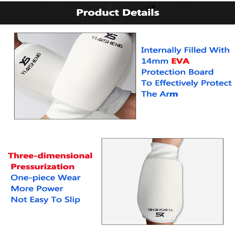 Технические характеристики: Название продукта: армгард Использование продукта: каратэ/тхэквондо/Санда/бокс Функция: давление поглощения ударов для предотвращения травм рук Категория: наручи локоть Размер: 26 см * 13 см Материал поверхности: эластичная дышащая трикотажная ткань Материал внутреннего слоя: EVA высокой плотности Цвет: черный/белый Размер: S/M/L Преимущество: 1. Экологически чистая ткань, уменьшает трение и комфорт при носке 2. Трехмерное плетение, дышащее и Впитывающее пот, не скользящее амортизирующее, сбалансированное сжатие 3. Утолщенная подкладка EVA для эффективной защиты руки 4. Цельный износ, не легко скользит, более мощный 5. Эластичная резинка для рта покрыта и износостойкая.