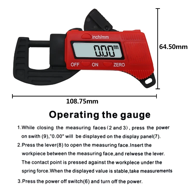 - Measuring range: 0-150 mm / 0-6 inch - Resolution: 0.1 mm / 0.01 inch - Repeatability: 0.1 mm / 0.01 inch - Maximum Measuring Speed: 1.5 m / sec or 60 inch / sec - Display: LCD screen - Power: One Battery (not included), LR44 / SR44 1.5V or CR2032 3V - Total size: Approx. 235 x 77 x 15 mm - LCD display size: Approx. 40 x 15 mm - Main Color: Silver - Note: If the numbers goes wrong when using , please change a new battery , it will work normally again , this is not quality problem, Please do not open dispute if this happened