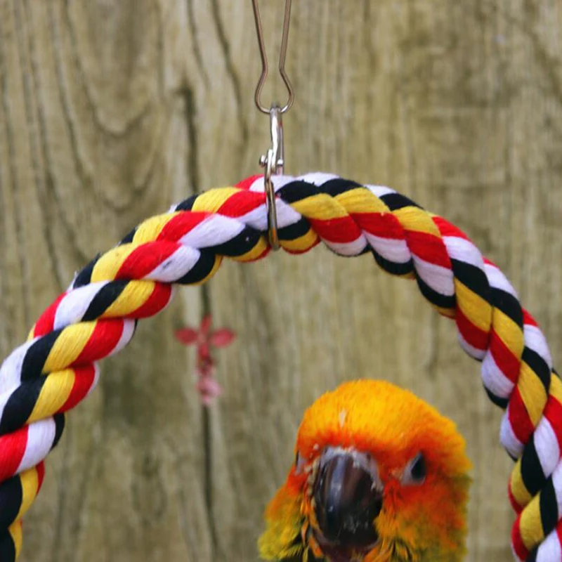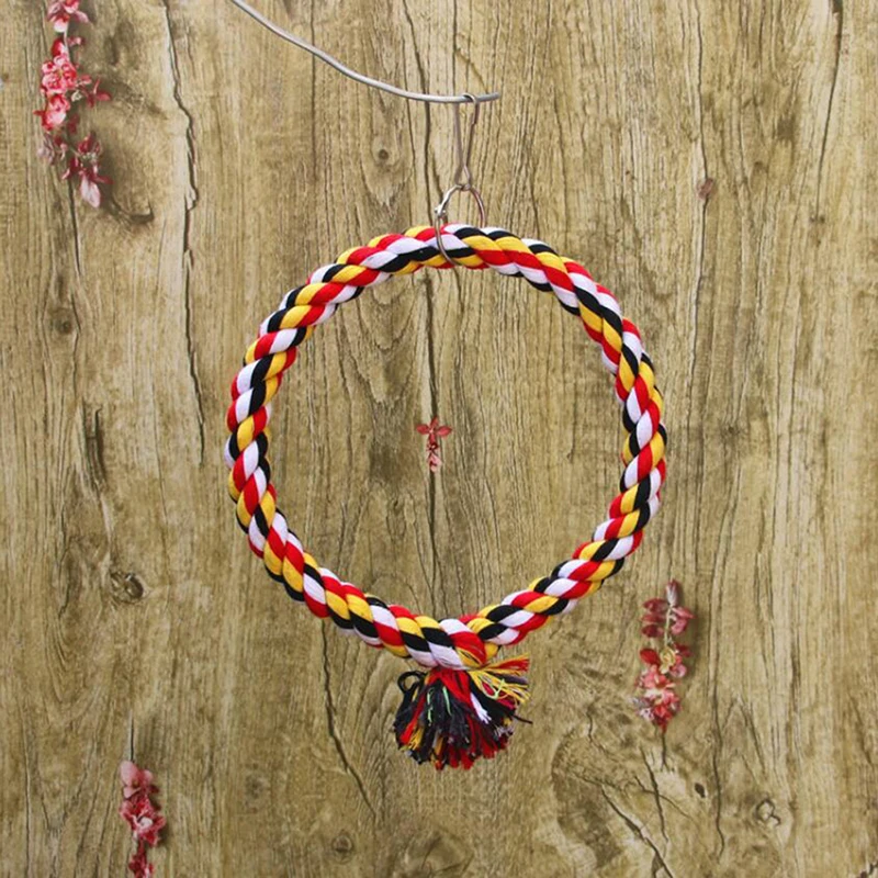 Bird Perch Toy Round Cotton Rope Chewing Bar Parrot Swing Climbing Standing Toys With